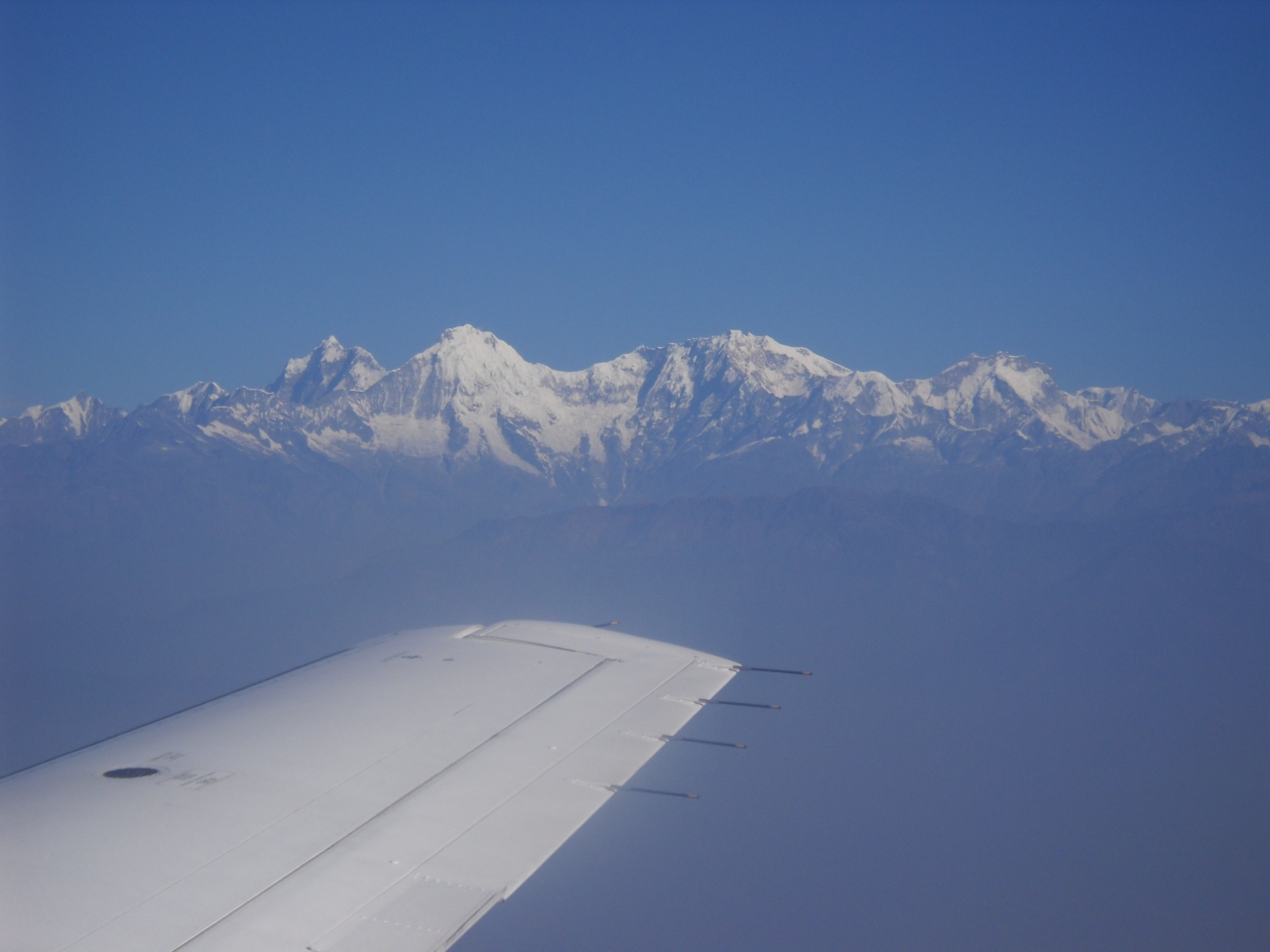 飛行機の窓からはヒマラヤ山脈を目線に見ることが出来る。