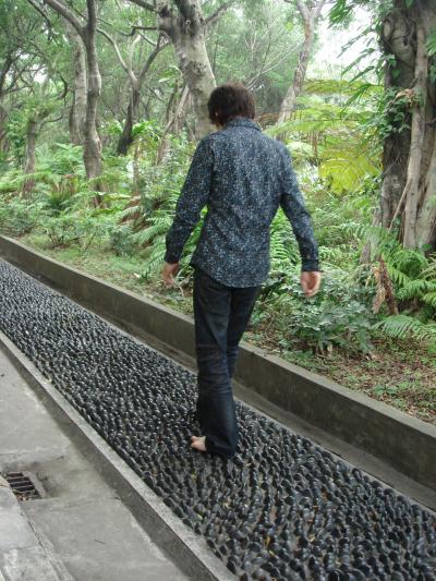 ゴツゴツした石畳の上を裸足で歩くだけなのですが・・・。 -