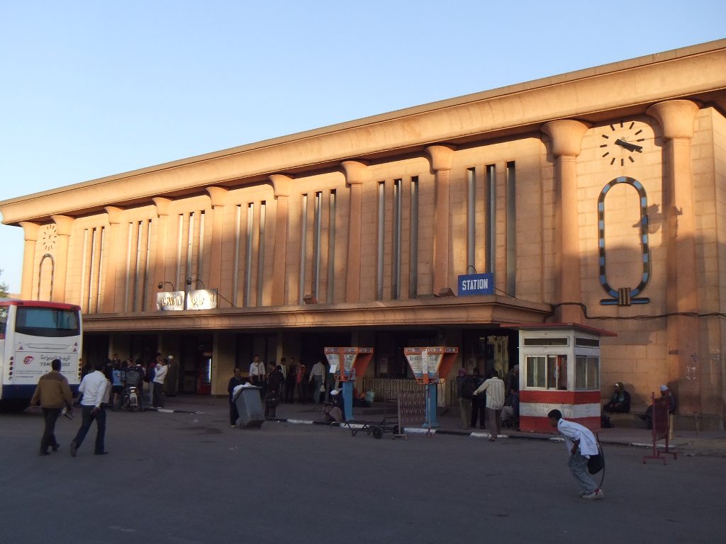 今夜は寝台列車ナイルエクスプレスに乗って、カイロへ行きます(高いツアーは飛行機でひとっ飛びなのですが)。16時15分、アスワン駅に到着。ここで突然放されます。ナイルエクスプレスは19時発なので、18時30まで自由時間となるのです。スーツケースはバスがまた運んでくるので乗せておけばよいのですが、荷物が1つのわたしは、担いで歩きます。アスワン駅の向かって右側に、スーク(商店街)が延びています。ナイルエクスプレスで帰る同じ境遇の観光客で賑わっています。