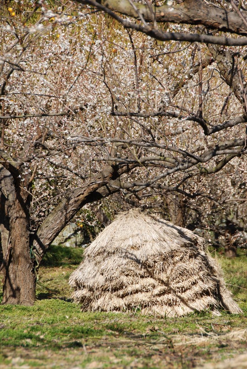梅の木と藁。