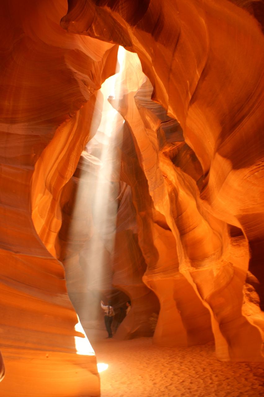 Antelope Canyonは、鉄砲水が流れることによって浸食されてこのような複雑な地形になったそう。