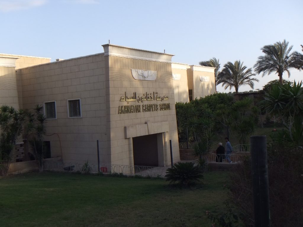 次はじゅうたん屋さんに行きます(このページは同じツアーに参加する人くらいにしか参考にならないと思います。他のページに入れようかとも思いましたが、長くなるので独立させました)。サッカラ街道沿いには似たようなじゅうたん屋さんがいくつも目につきます。16時5分到着。「アケナートン・カーペット・スクール」というところです。スクールということで、