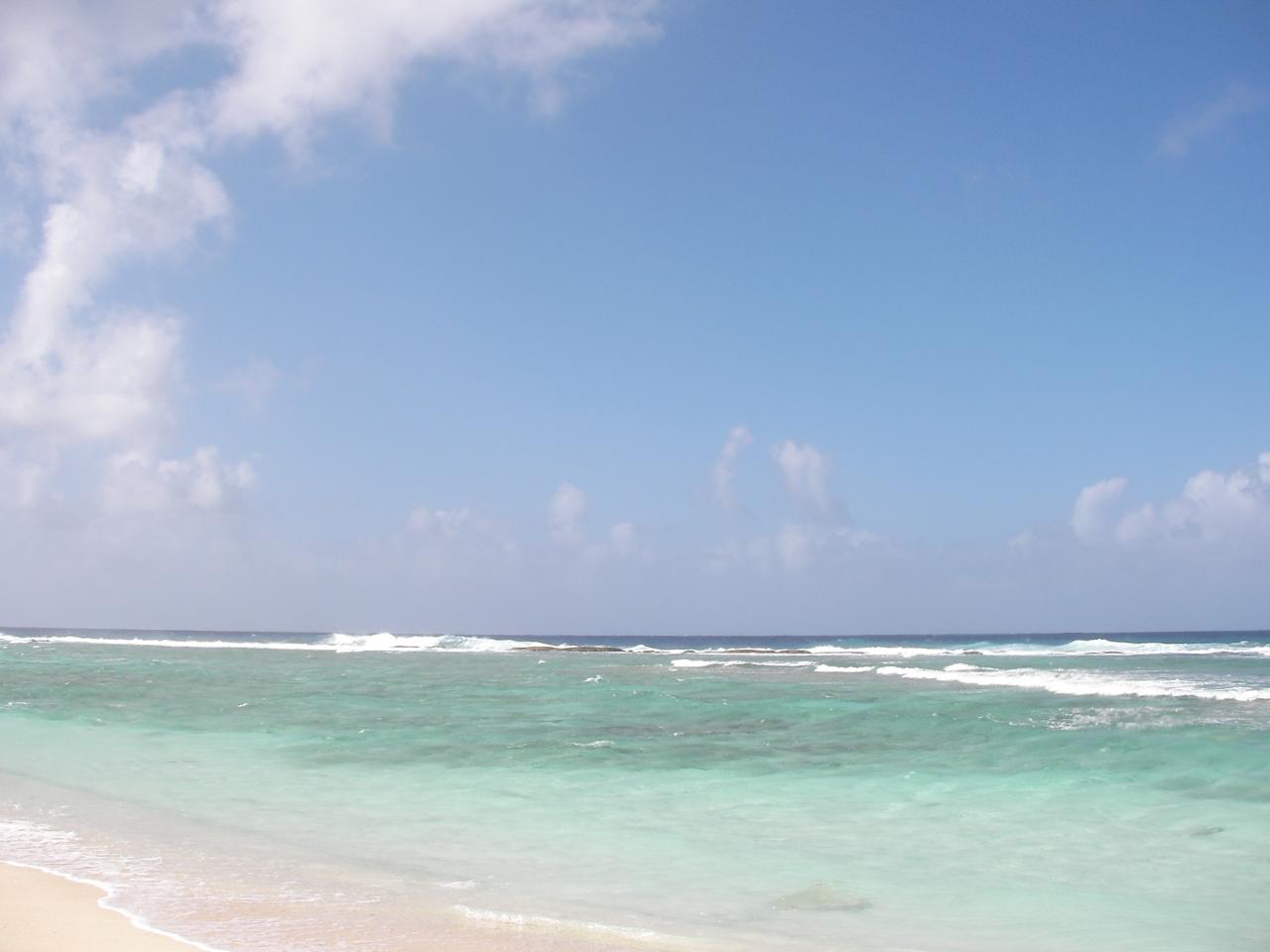 それにしても曇り空とスコールの中で撮った私の写真とは大違い!ホント、綺麗な海ですね〜。