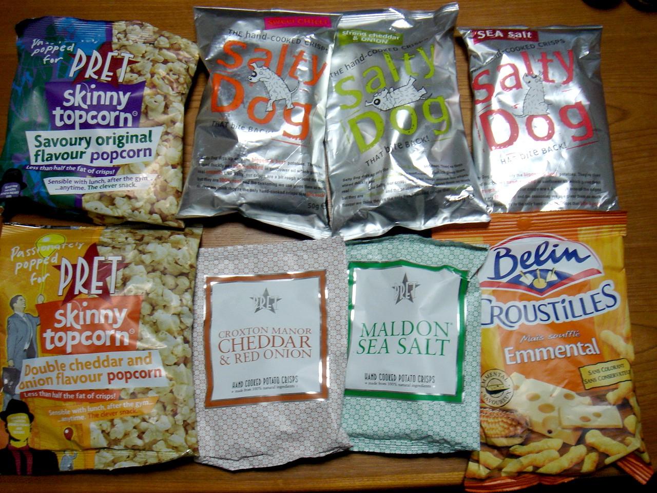 遅れたお詫びに空港内で使える5ポンド券をもらったが、カフェで売っているものにしか使えないから、チップスを購入しお土産にすることにした。