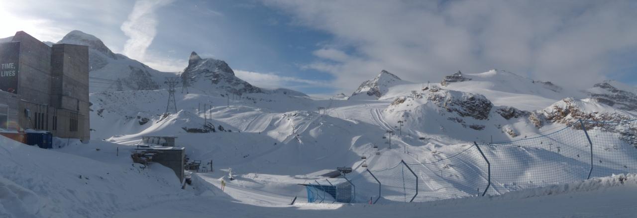 クラインマッターホルンの展望台からGobba di Rollin(3899m)の氷河スキー場方面。ブライトホルンも間近。