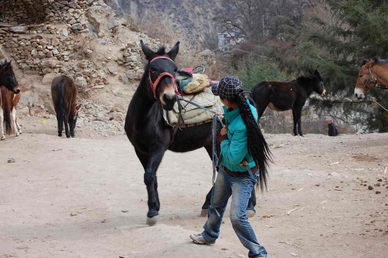 氷河が展望出来る太子廟(2,950m)までは、ラバの背に1時間余揺られた。初めての乗馬体験であり、激しい上下運動に尻の皮が悲鳴を上げた。