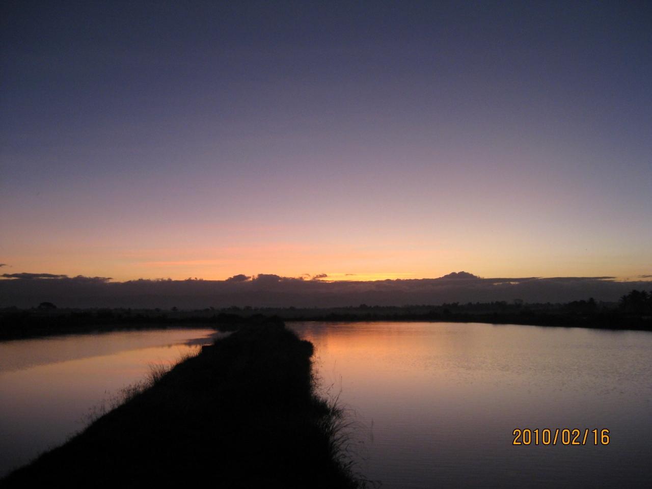 マニラ郊外で朝早く田舎の日の出も楽しみに