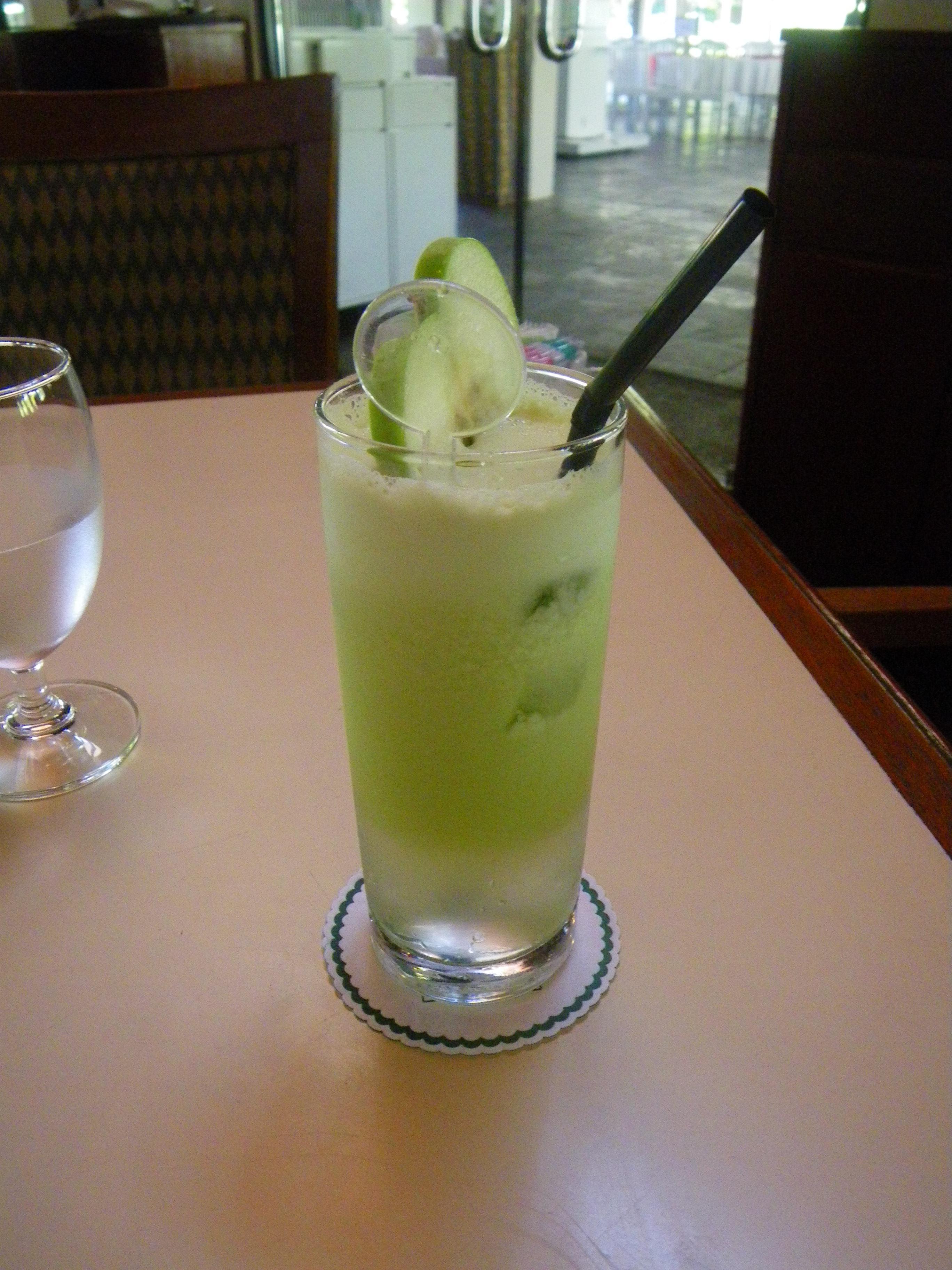 港にある食堂でパインジュースを購入して船に乗りました。船での飲食は禁止されていませんでしたよ。