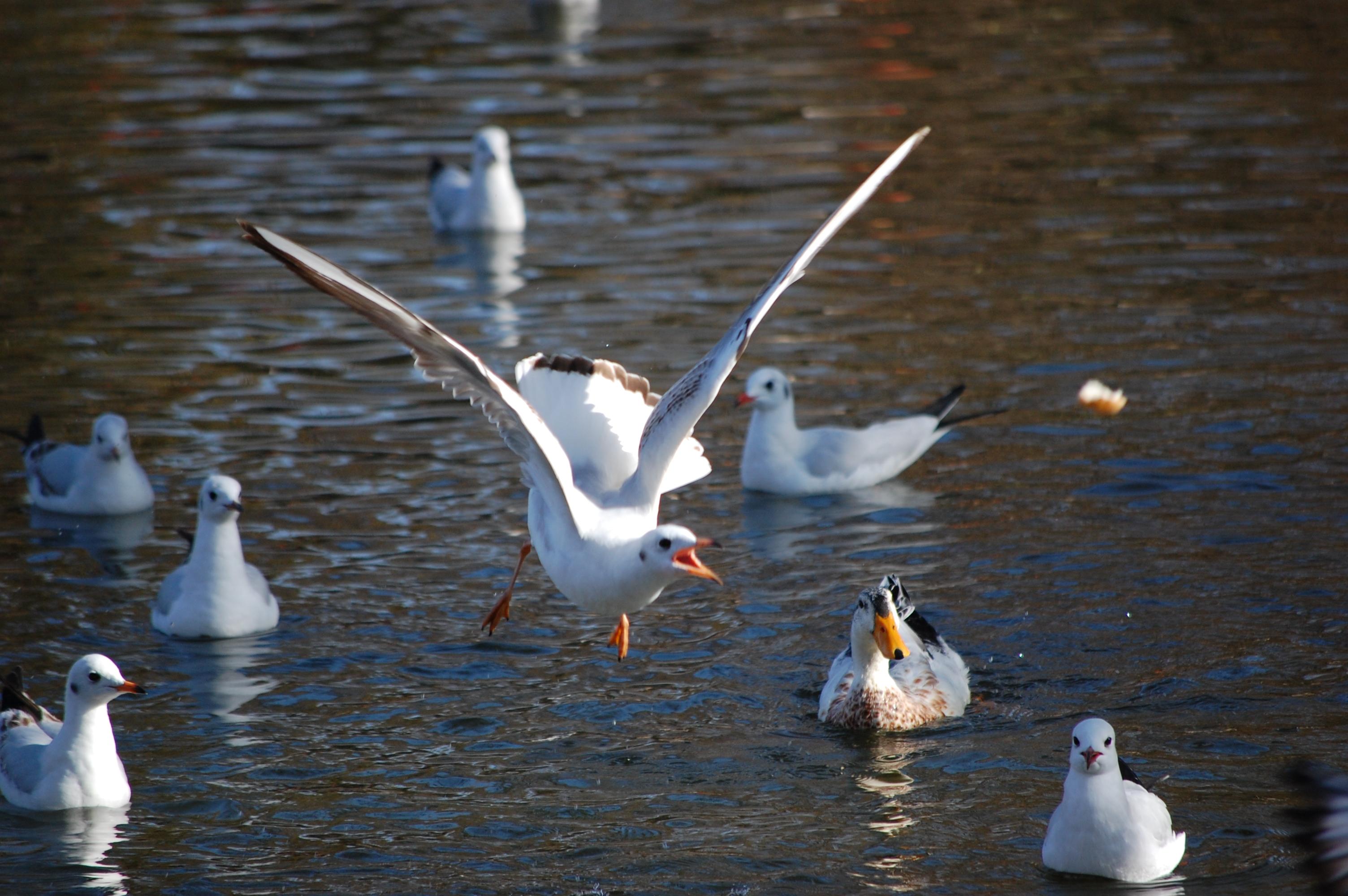 園内の池にはシベリアから越冬のために飛来したユリカモメが数知れず羽を休め、