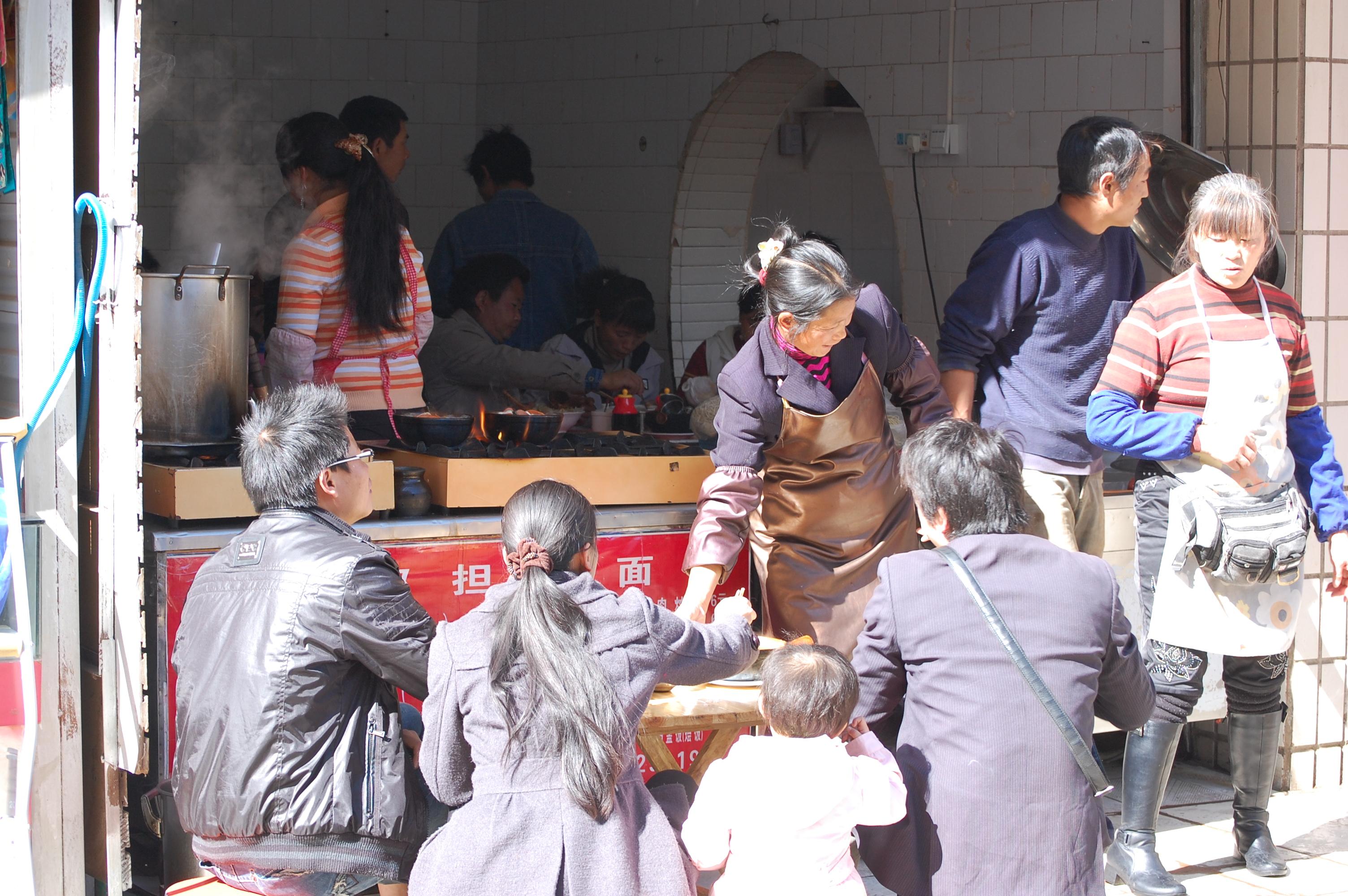 昼食は、地元の人たちで大繁盛している店で、鍋焼き米線を食べた。