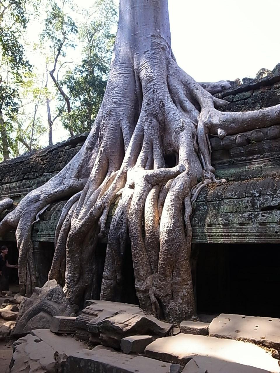 ガジュマルの巨木がいたるところにからみ付き、寺院が