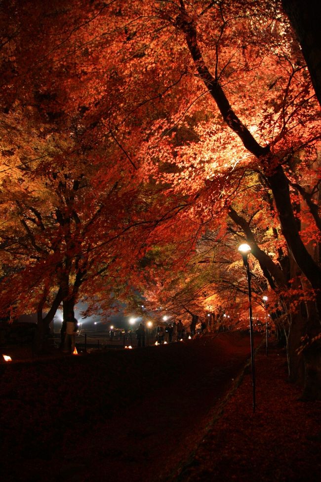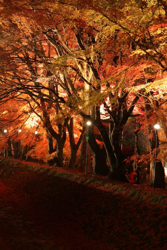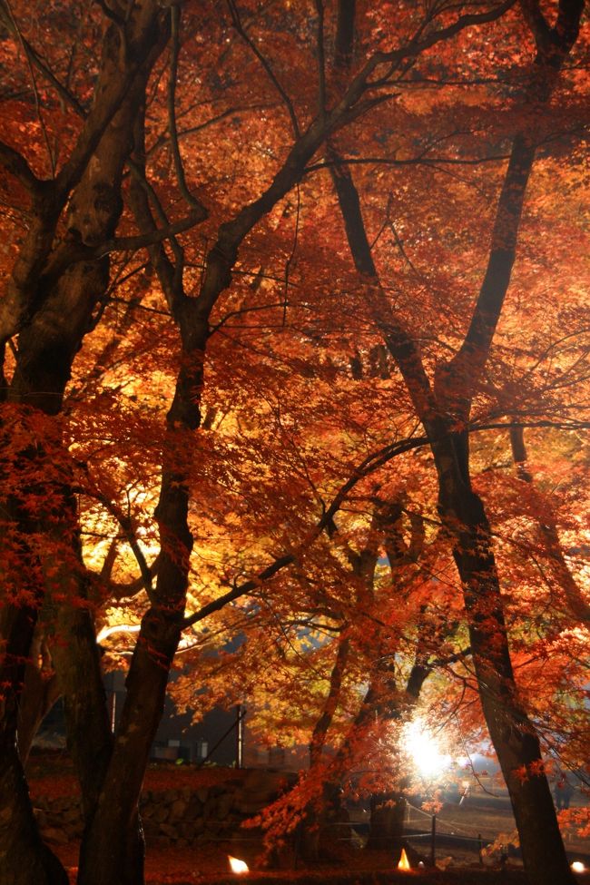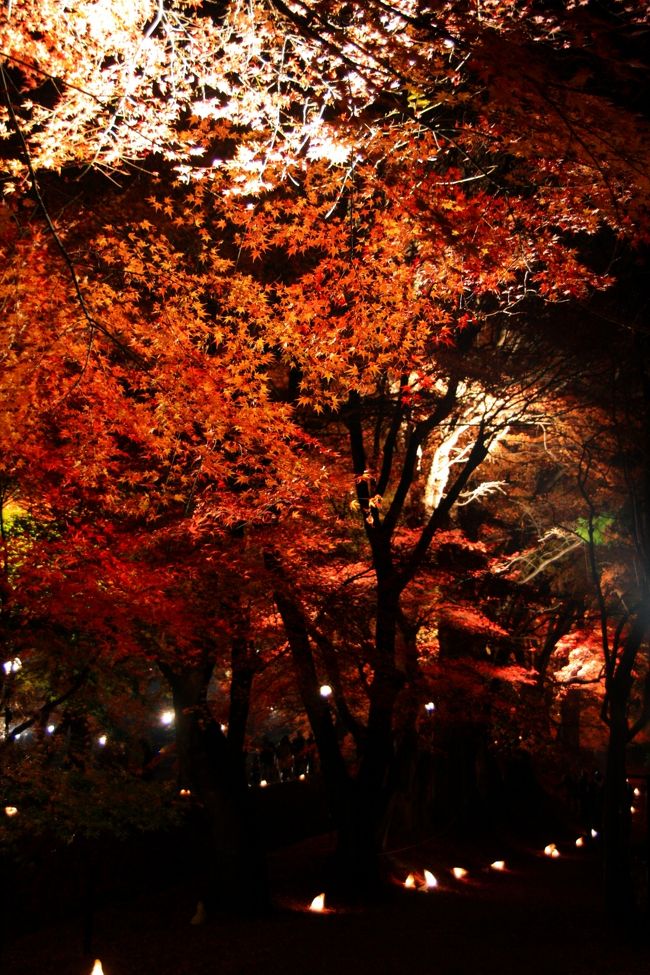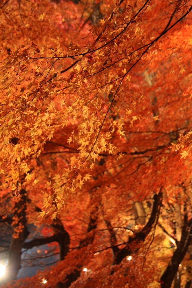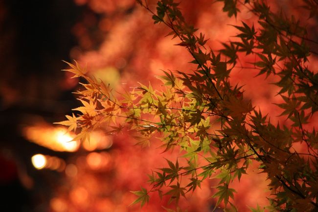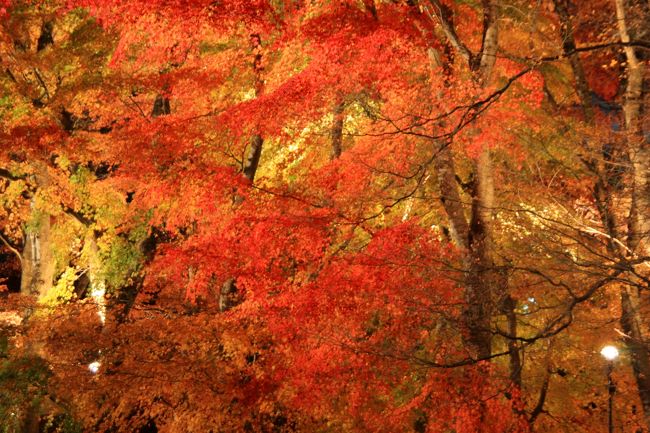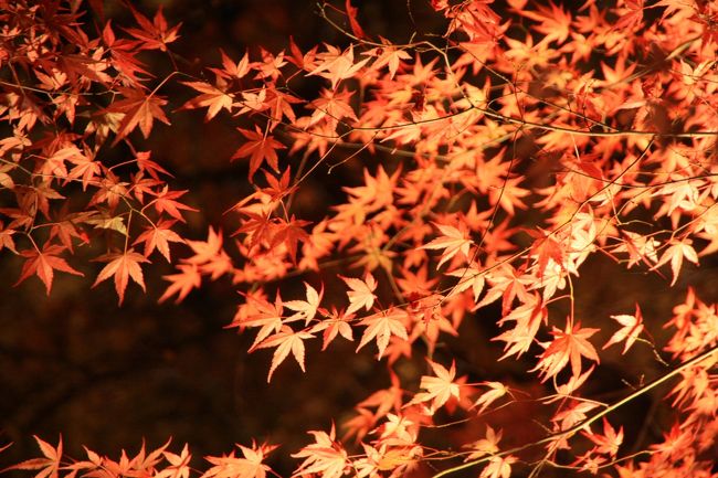 紅葉したモミジが、ライトアップにより幻想的な雰囲気を醸しだしていて見事でした。