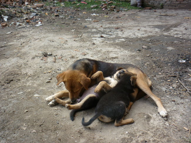周りのネパール人もちょくちょく餌をあげてるみたいで、子犬達は丸々太ってます。 -