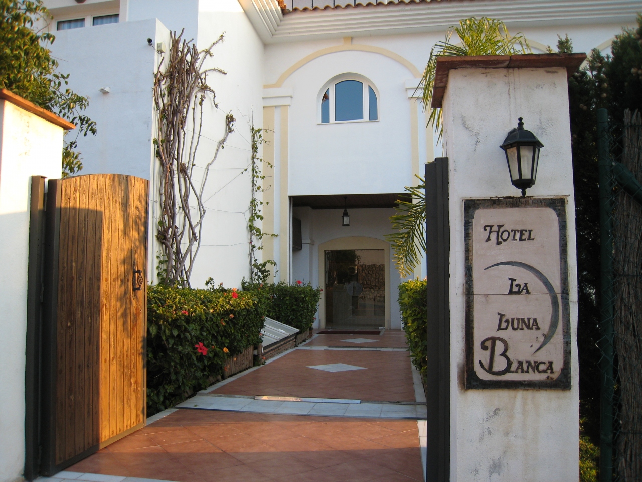 6泊お世話になったラ・ルナ・ブランカ(Hotel La Luna Blanca)の入り口とホテルの外観。