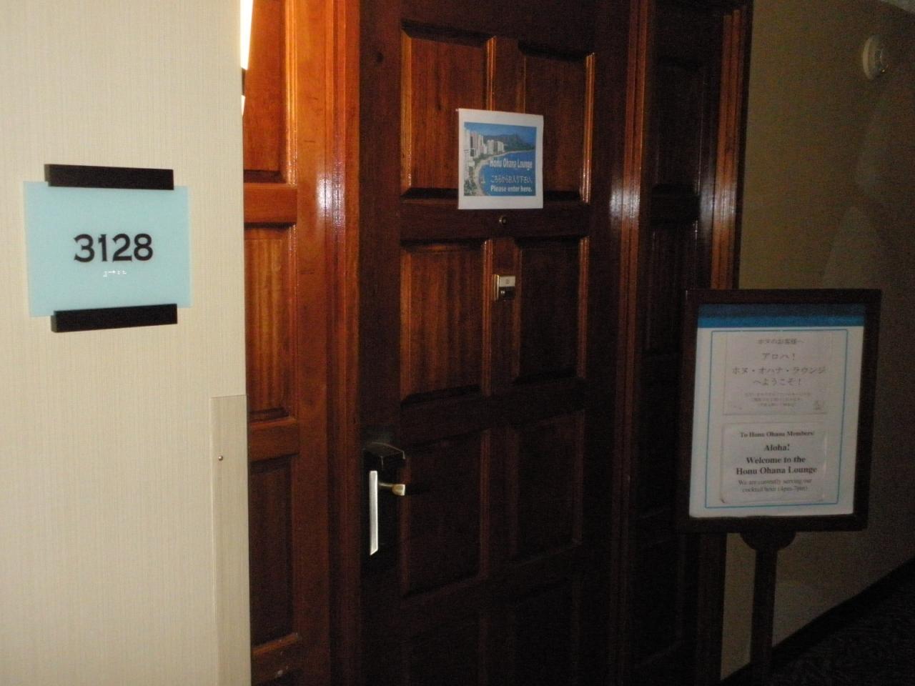 「ホヌ・オハナ・ルーム」の入り口です。シェラトン・ワイキキホテルのホームページでは23階となっていますが、現在は31階に移っています。23階はJTB専用ラウンジに改修中と思います。