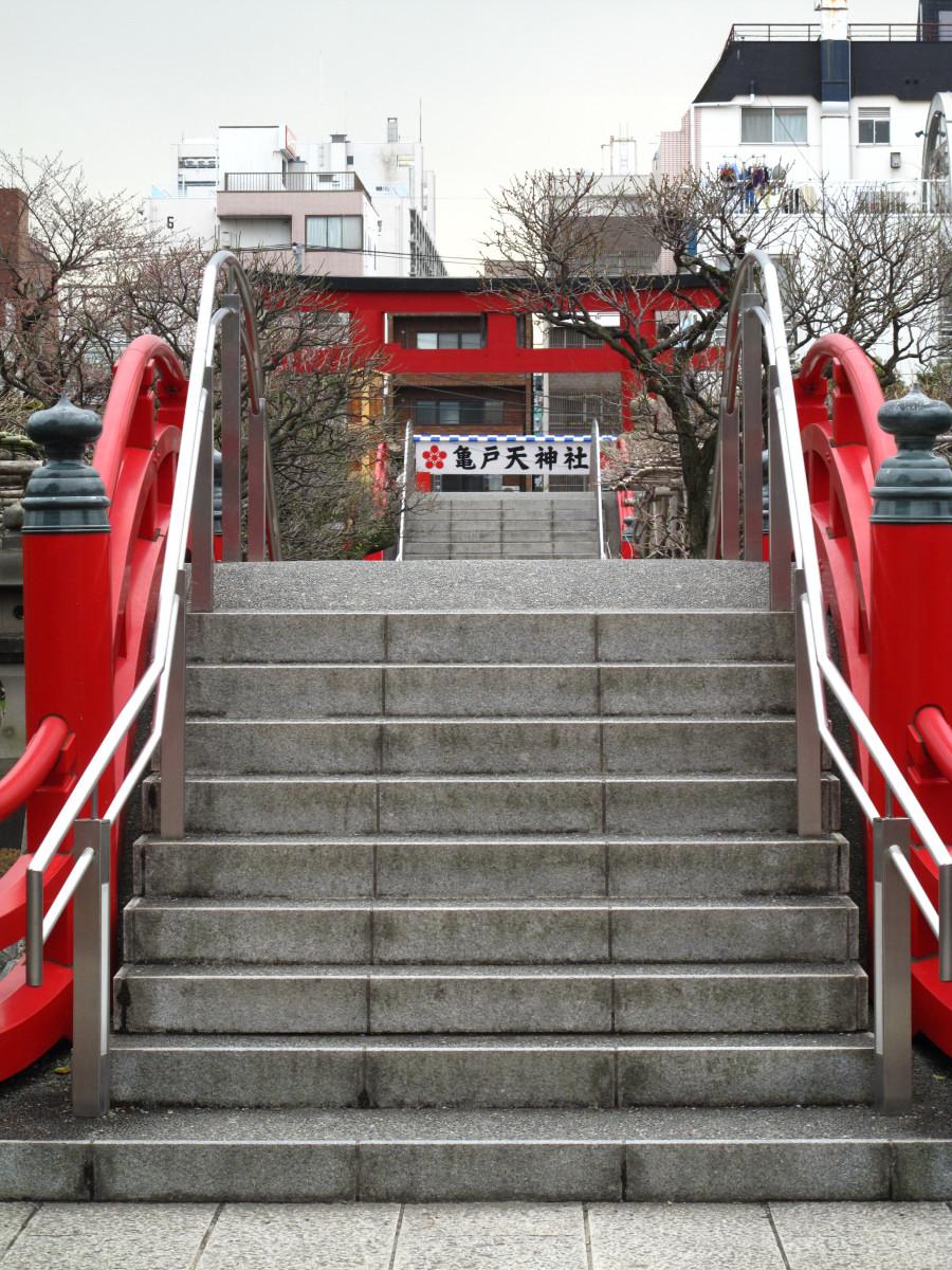 3月26日 友人と亀戸へあさり鍋の昼食後亀戸天神へ。スカイツリーが見えました。