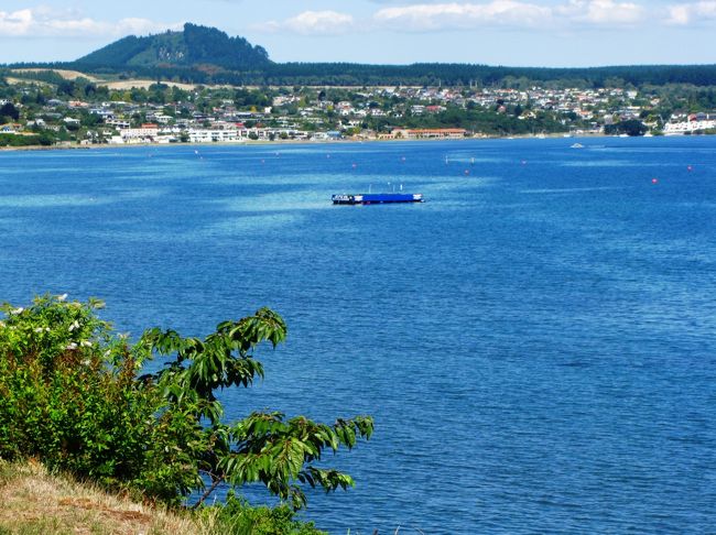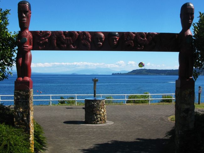 その後、温泉とマオリ族の街・ロトルアに戻り、市内観光へ(ロトルア湖(車窓)、間欠泉で有名なテ・プイア(下車))(約1時間半)