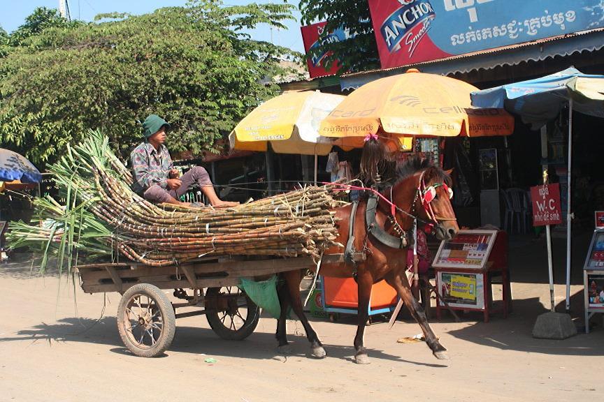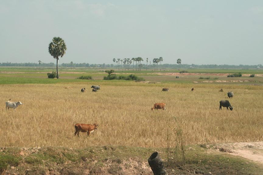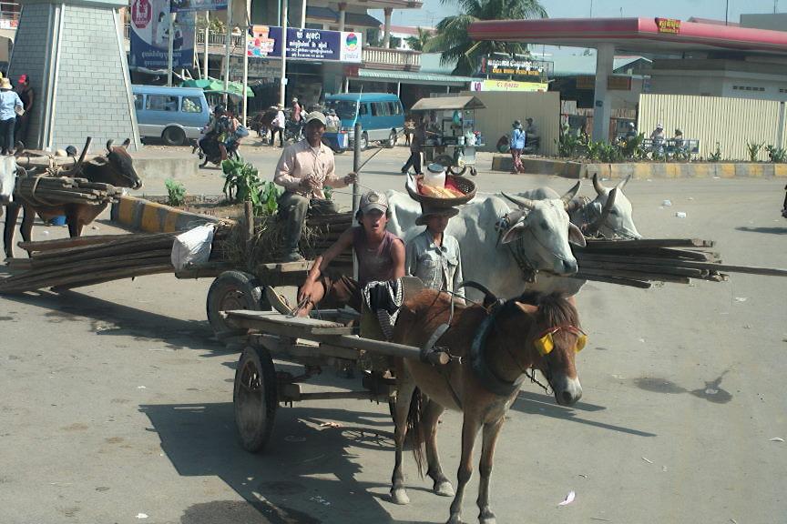 セントラルマーケット前のソリアトランスポーテーション社の8時30分発のバスで出発。 メコン川に沿って下るため水田が多い。 馬車や水牛が見られる前時代的な風光の中を進む。 2時間でフェリーでメコン川を渡り、さらに1時間で国境の街バペットに入って昼食の休憩。 国境でパスポート(カンボジア人はビザ)のチェックで約1時間かかってベトナムへ入国した。 ポイぺトでのタイからの入国に比較し、バスの乗り換えが無いので簡単です。
