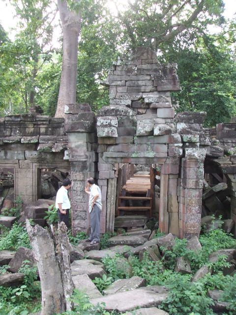 シソポンからその泥道を60km北上すると、バンティアイ・チュマー遺跡がある。アンコールワットと同じ12世紀に建てられたアンコール遺跡。2年くらい前まで崩壊が進んで酷い状態だったのが、最近ではフランス(だったと思う)の援助で修復が進んでいる。