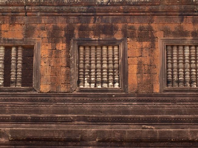 クメール遺跡でおなじみの女神、アプサラの像。急いで大量に掘られた後期のアンコールワットのものと違って、丁寧に深く掘り込まれています。