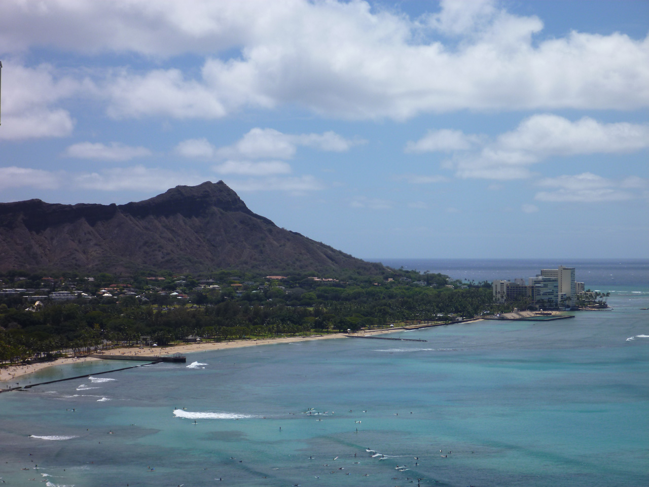 シェラトンワイキキは、窓からの景色も非常に良くワイキキ界隈でのショッピングや食事にも便利な、とても良いホテルでした。今回の私の旅行では雨期の末期にかかっていたため今ひとつ天候がすぐれませんでしたが、七瀬産が行かれる9月は、天候はバッチリだと思います。日焼けには注意していただいて、是非、楽しい旅にして下さい。