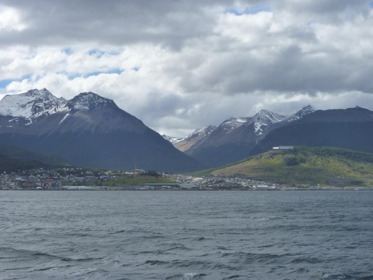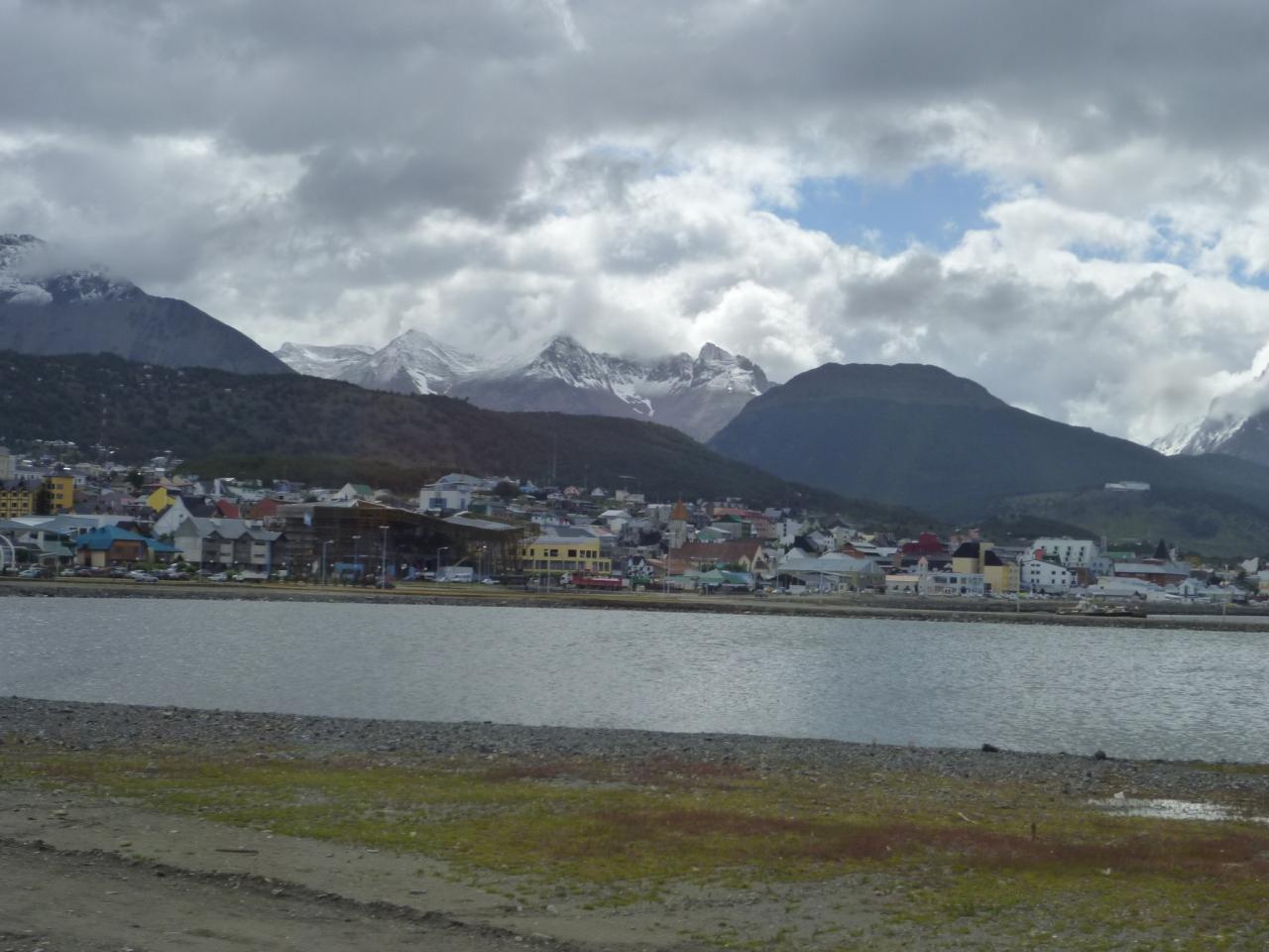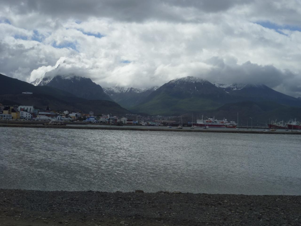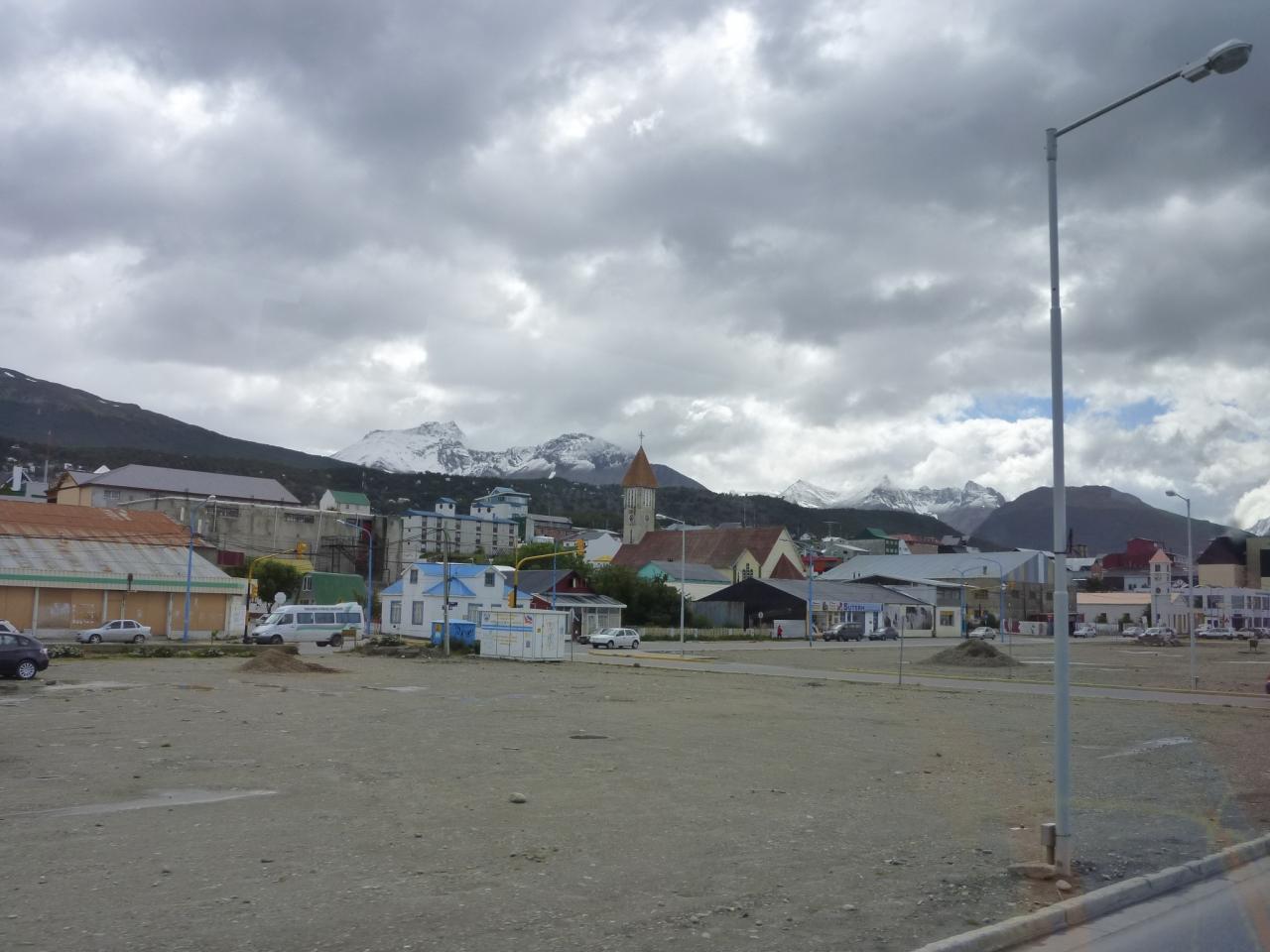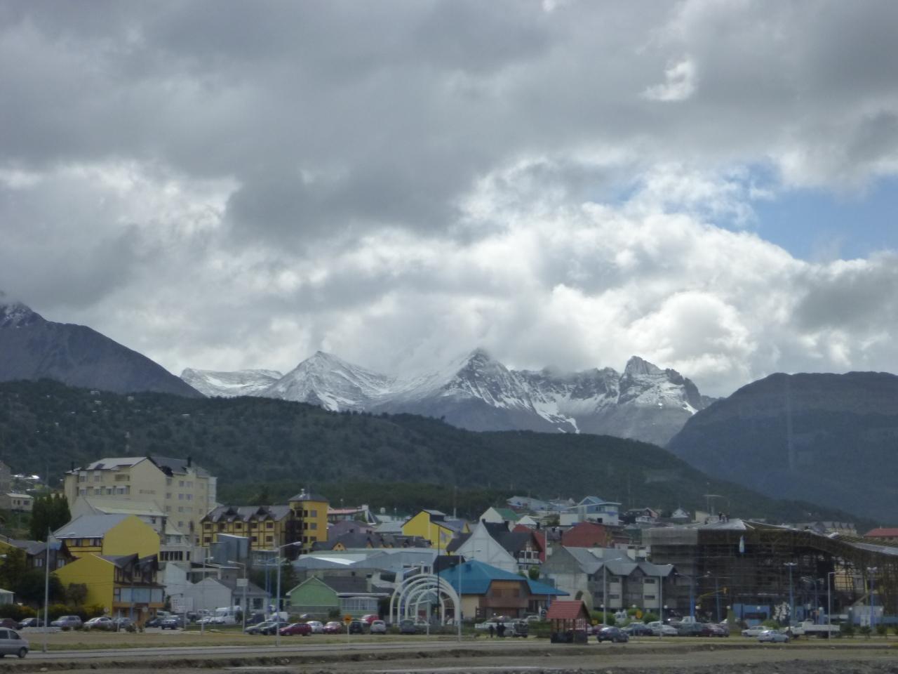 ウシュアイアの町の後方の山々にも残雪が残っている。