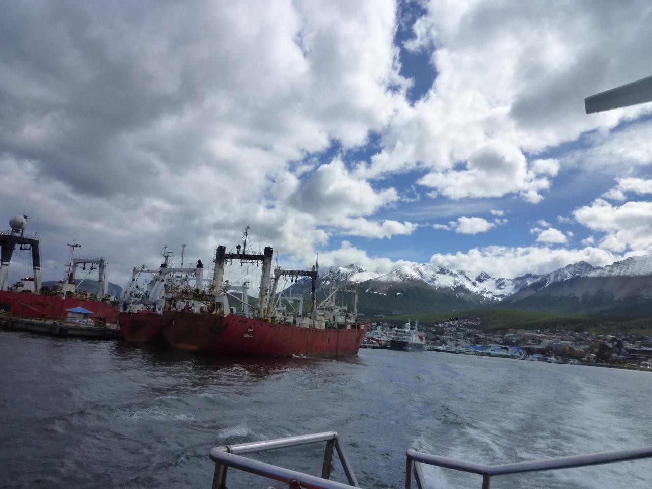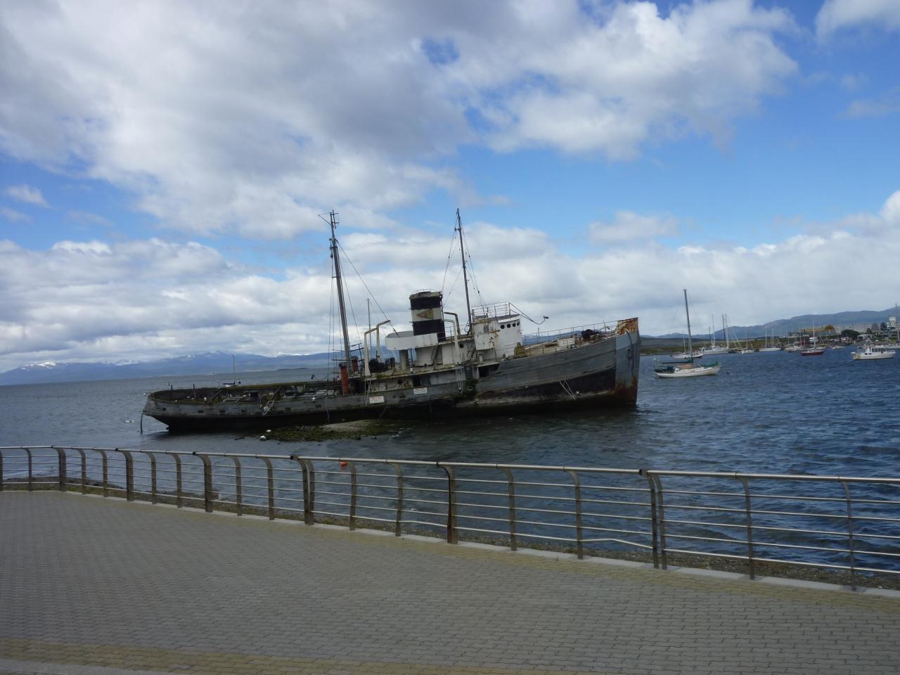 ウシュアイア湾に役割を終えたセント・クリストファー号の姿も!