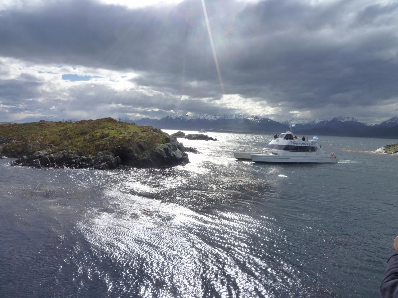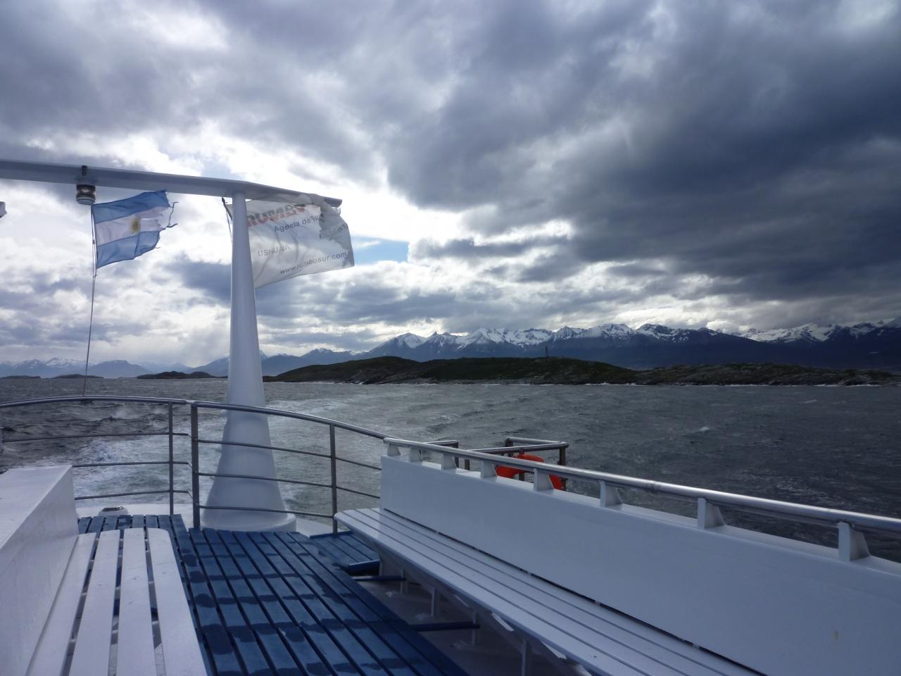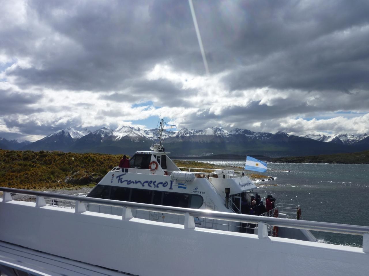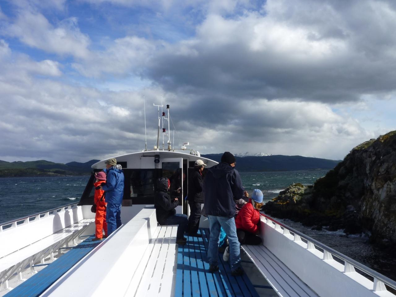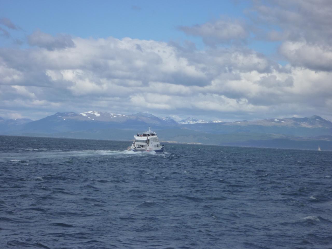 それ程大きくないカタマラン(双胴船)は、ウシュアイアの港を出発、風も強く波も少し荒い。