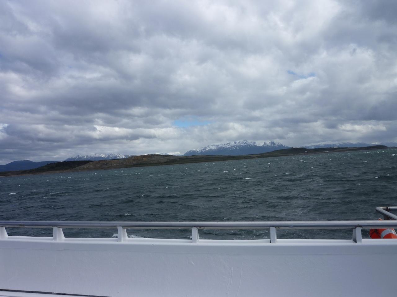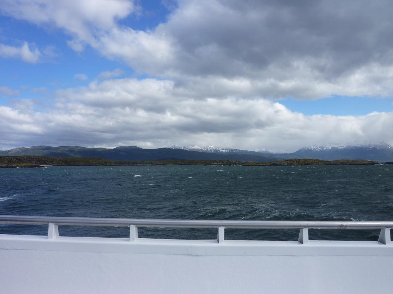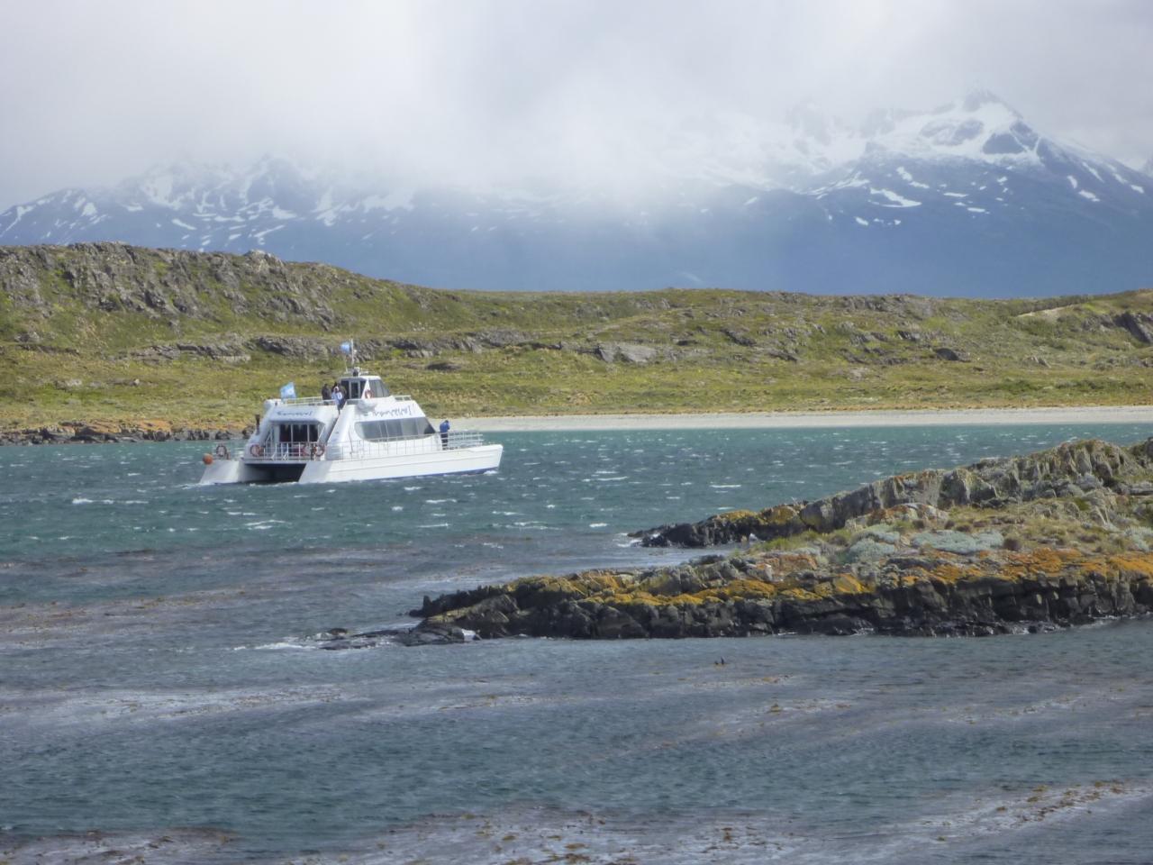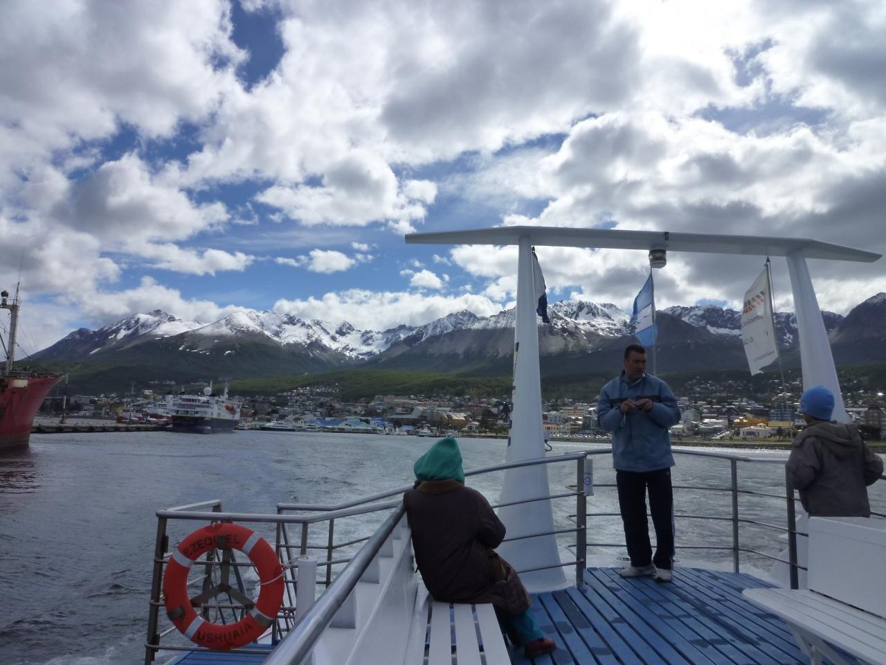それ程大きくないカタマラン(双胴船)は、ウシュアイアの港を出発、風も強く波も少し荒い。