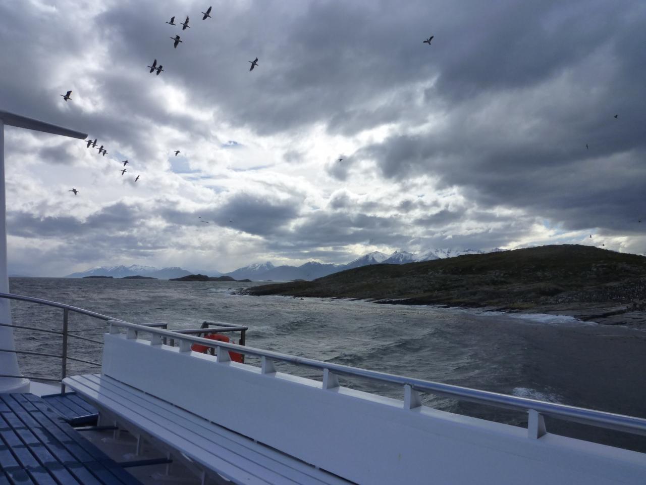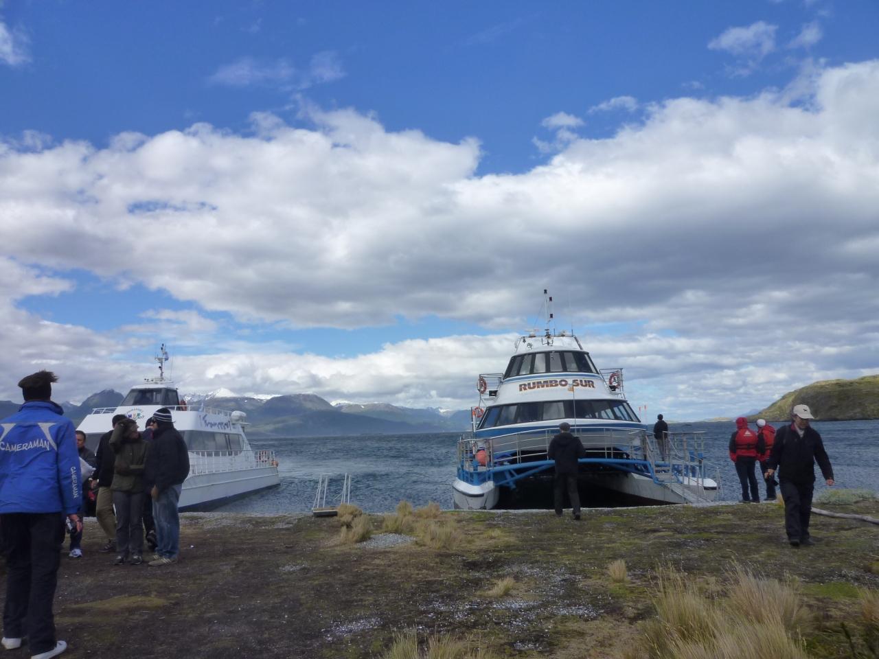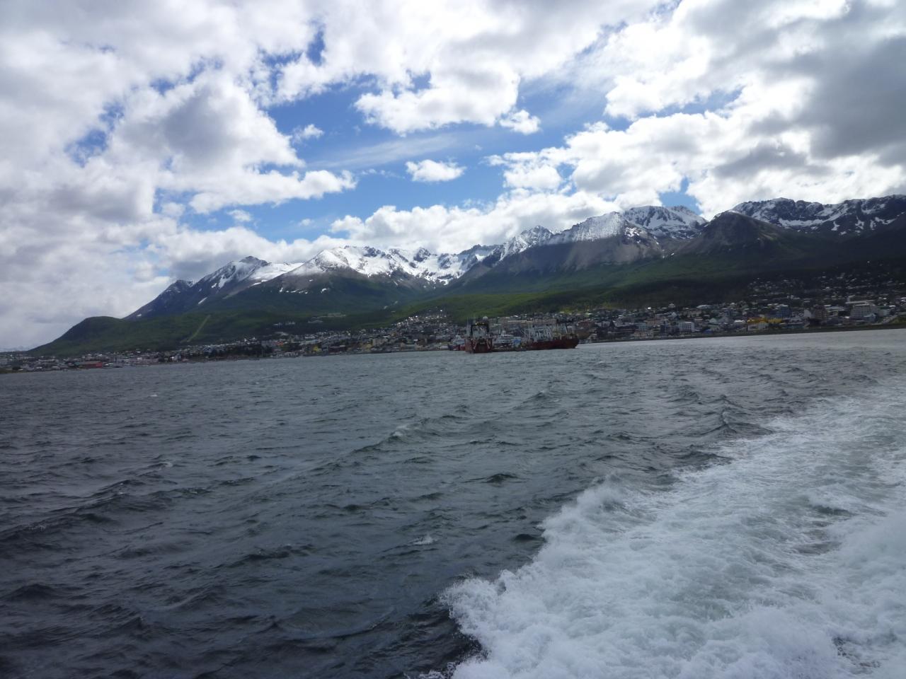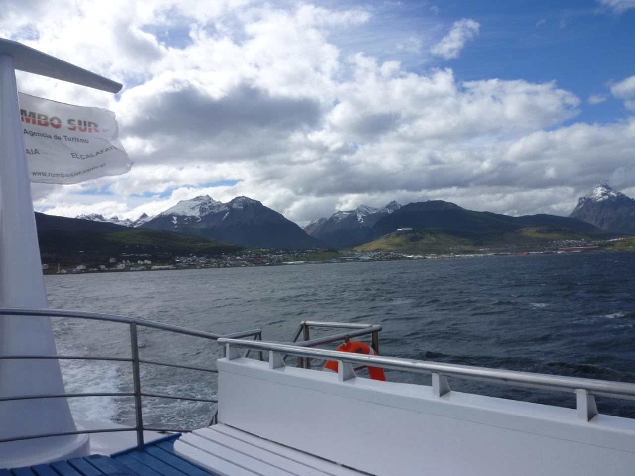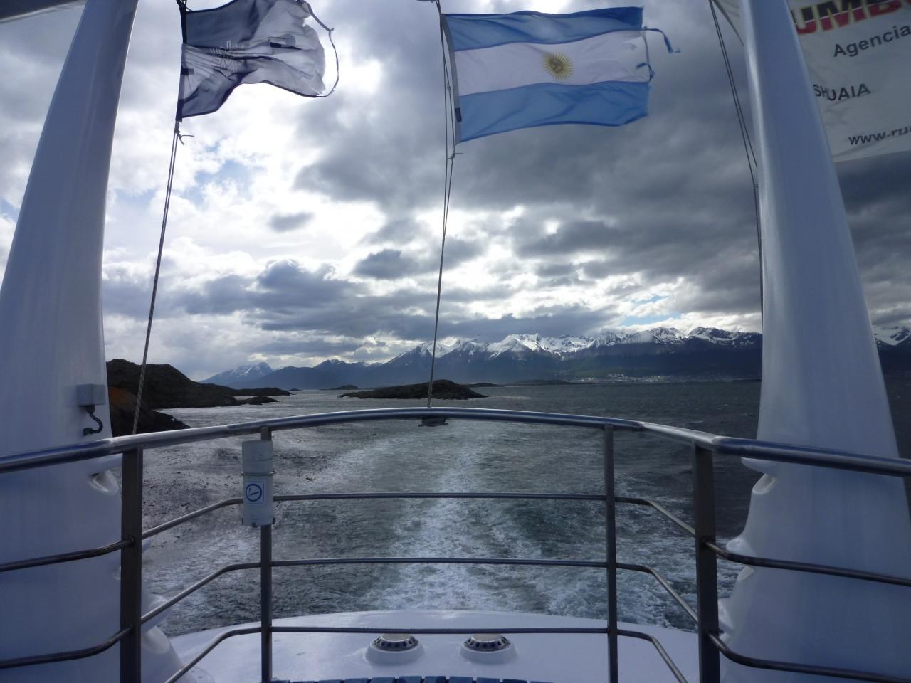 それ程大きくないカタマラン(双胴船)は、ウシュアイアの港を出発、風も強く波も少し荒い。