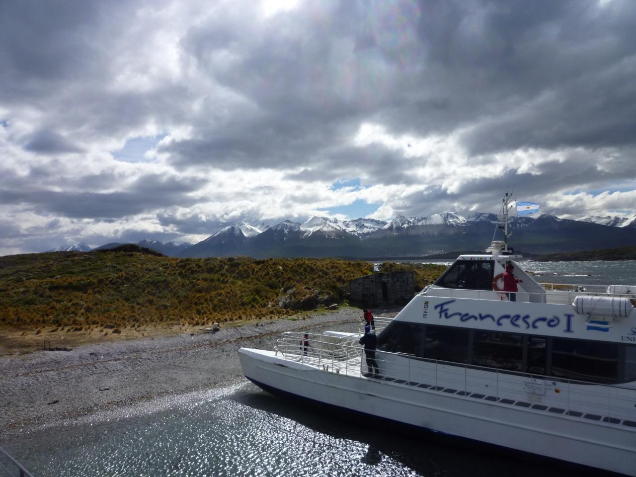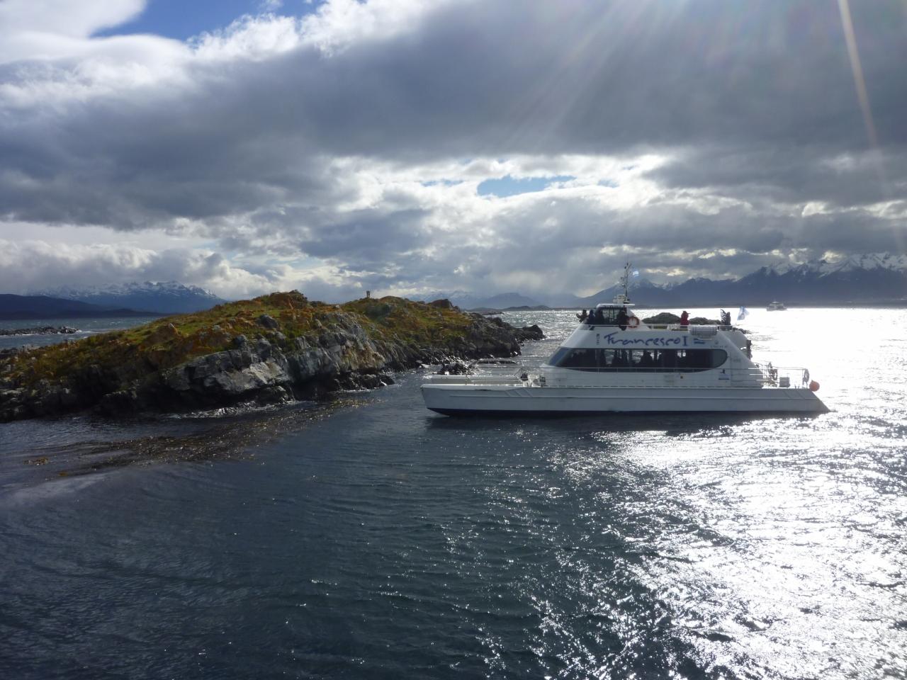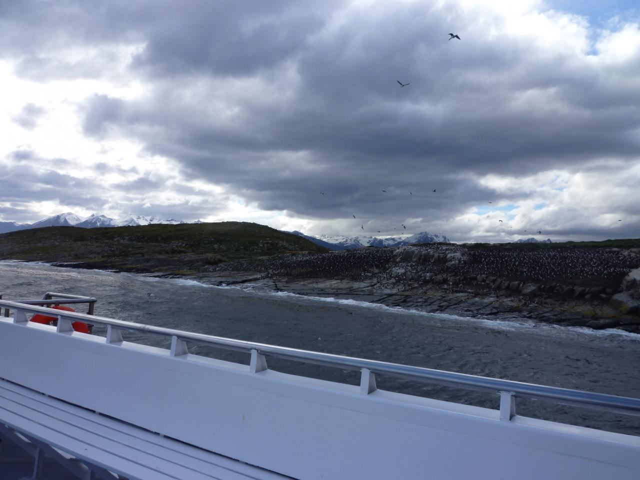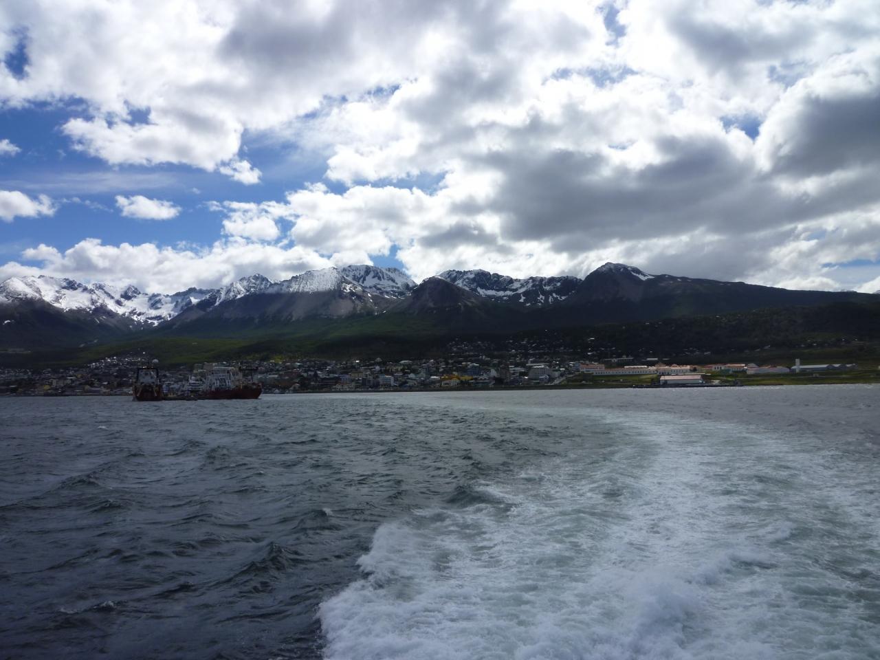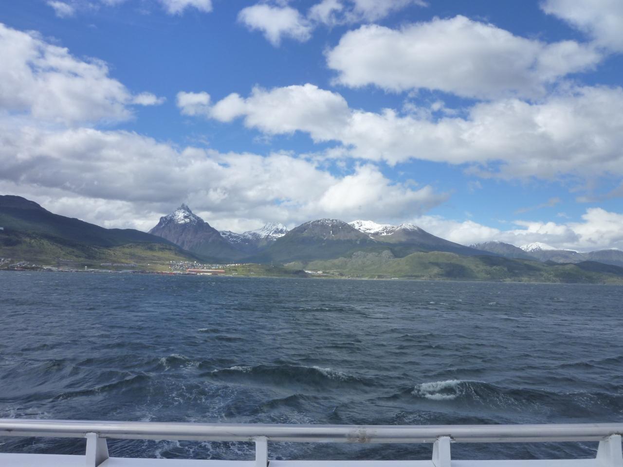 それ程大きくないカタマラン(双胴船)は、ウシュアイアの港を出発、風も強く波も少し荒い。