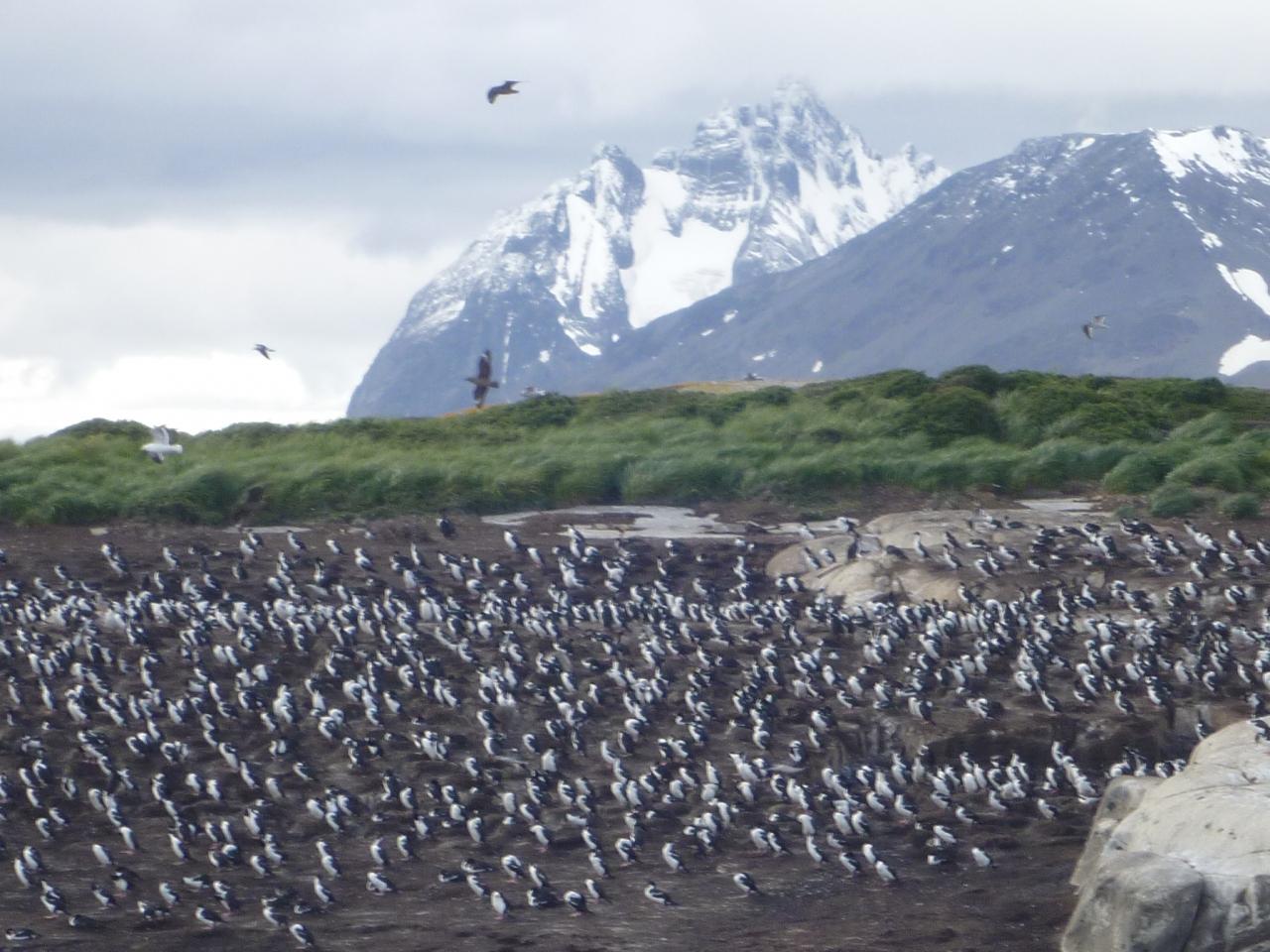 船の上空には、水鳥やかもめが舞い、アザラシや多くのオタリア、ペンギンに似た大集団のウミウ等の大集団も見れた。