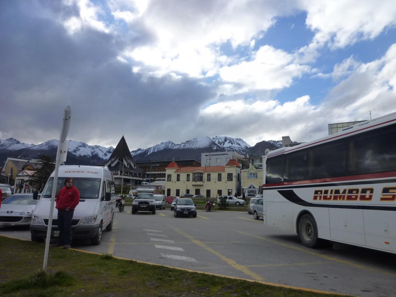 青い空と残雪の山並みとウシュアイアのカラフルな町並みがとても綺麗だった!