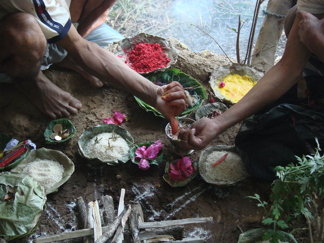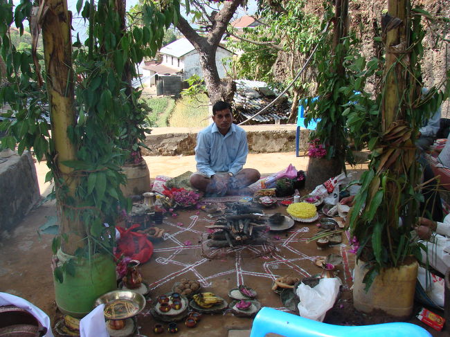 村に滞在した一ヶ月あまりの間に3回ほどプージャを見ることができた。最初は精霊へのプージャで後の二回は成人式に相当する儀式だったらしい。