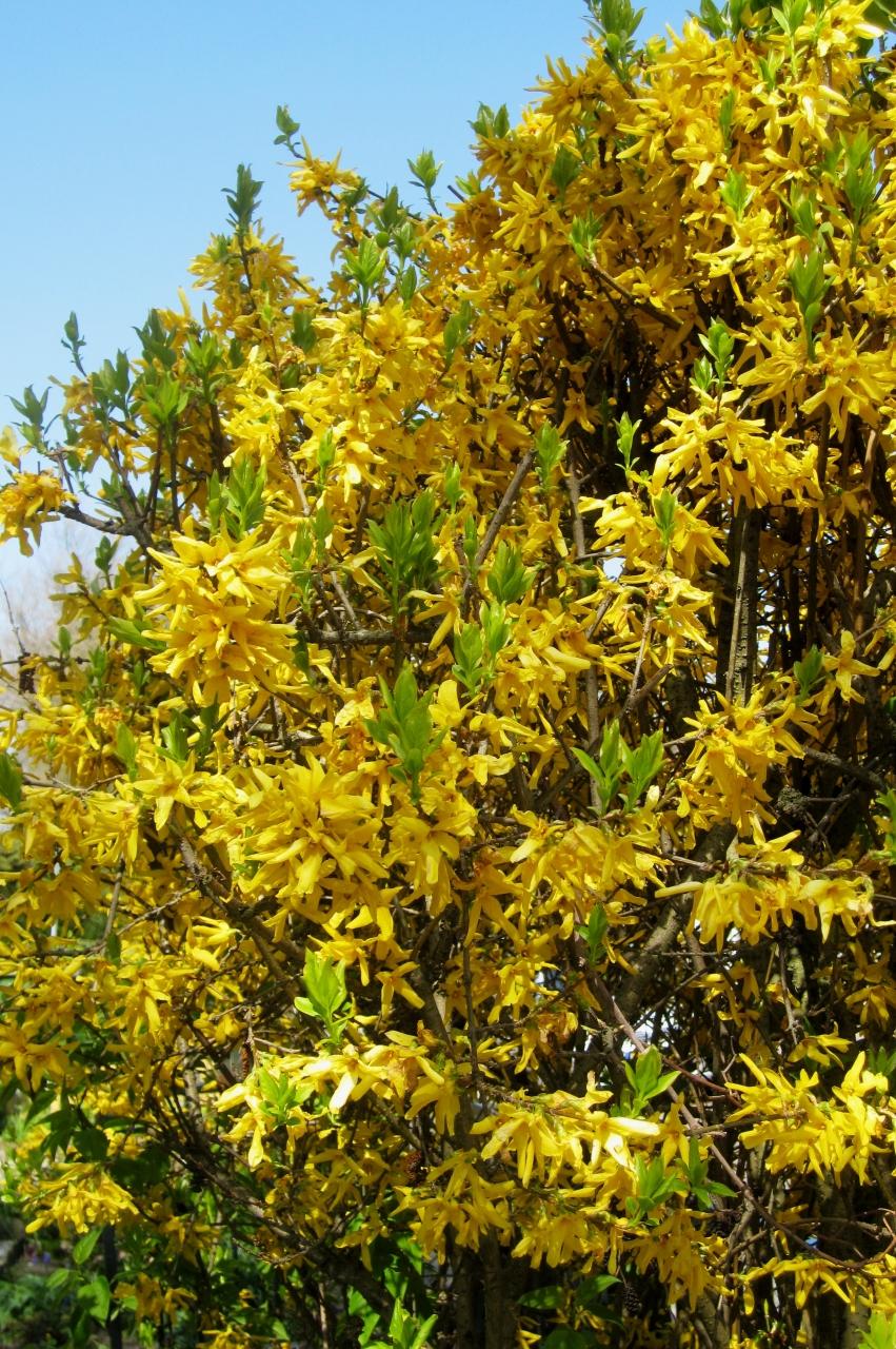 満開のレンギョウ(連翹)の黄色の花です。デルフト焼の工場近くの花壇で咲いていました。