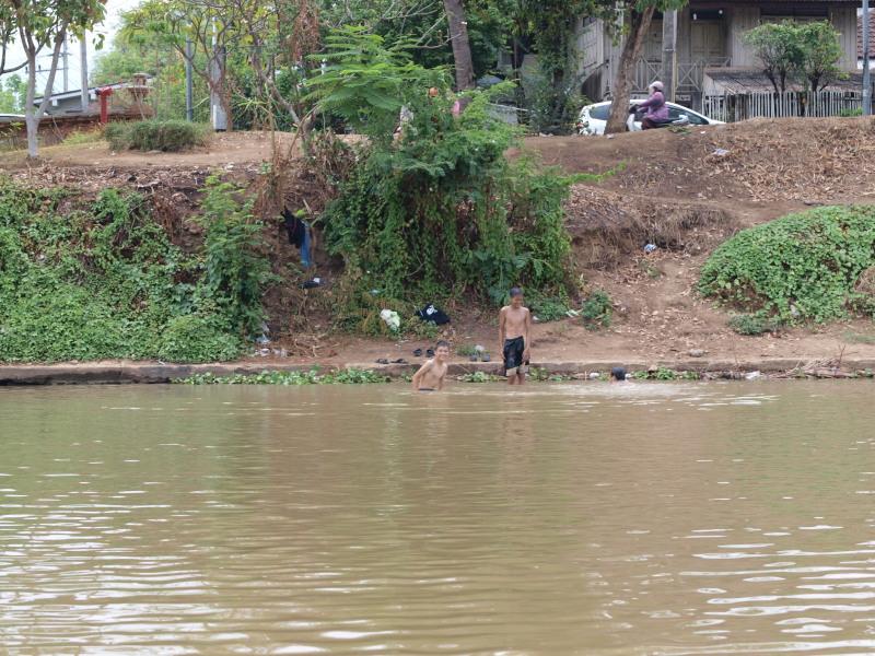 川岸に建つバルコニーに母娘と思われるふたりに手を振ると、笑顔を振り返してくれました。