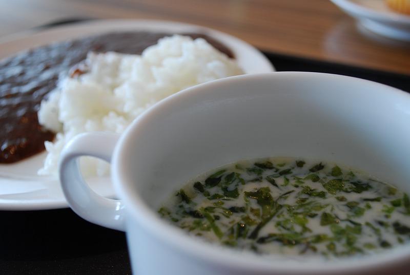 ラウンジで海苔とキャベツのクリームスープ美味しそう!