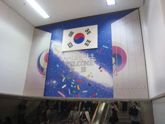 店の人にタクシーを頼んだら断られ、仕方なくバスを使おうかと店を出て金浦空港方面(左手側)に歩いていくと緑色のバス(地下鉄との連結を容易にする役割等を担うとされる)がやたらと曲がっていく交差点があったので同じように行くと、地下鉄の駅(9号線開花/GEAHWA)ができていた。