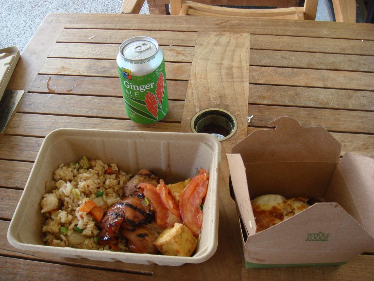 お昼をWHOLE FOODS MARKETのDELIで購入。さまざまなメニューがあり、自分で好きな食材を皿にとって、重さに応じて料金が決まります。