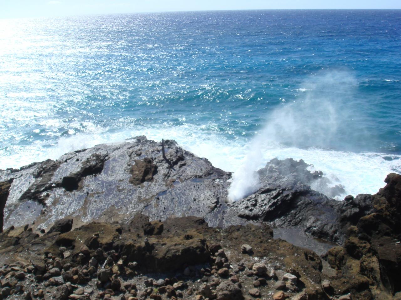 ハナウマ湾できれいな海を見たのち、ハロナ潮吹き穴(写真)にやってきました。