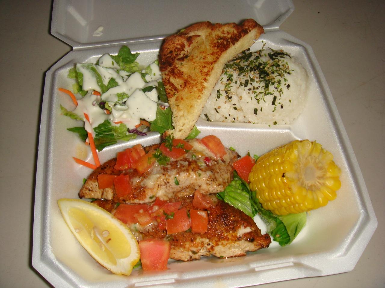 晩御飯です。定番のチャイナエクスプレスをロイヤルハワイアンセンターでいただきました。