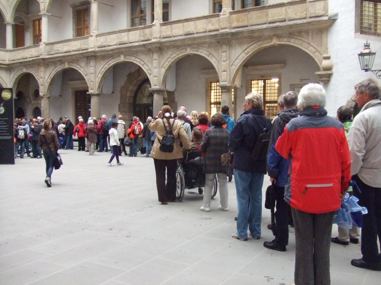 ゼンパーオペラの見学は、私が行ったときは13時〜15時半だけでした。ここも長蛇の列で、寒風吹きすさぶ中、みなさんじっと並んでます。