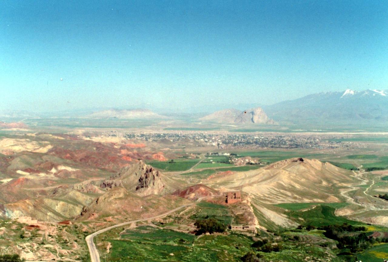 トルコ入国管理事務所から山間を見下ろすと、遠くに街が広がっていた。