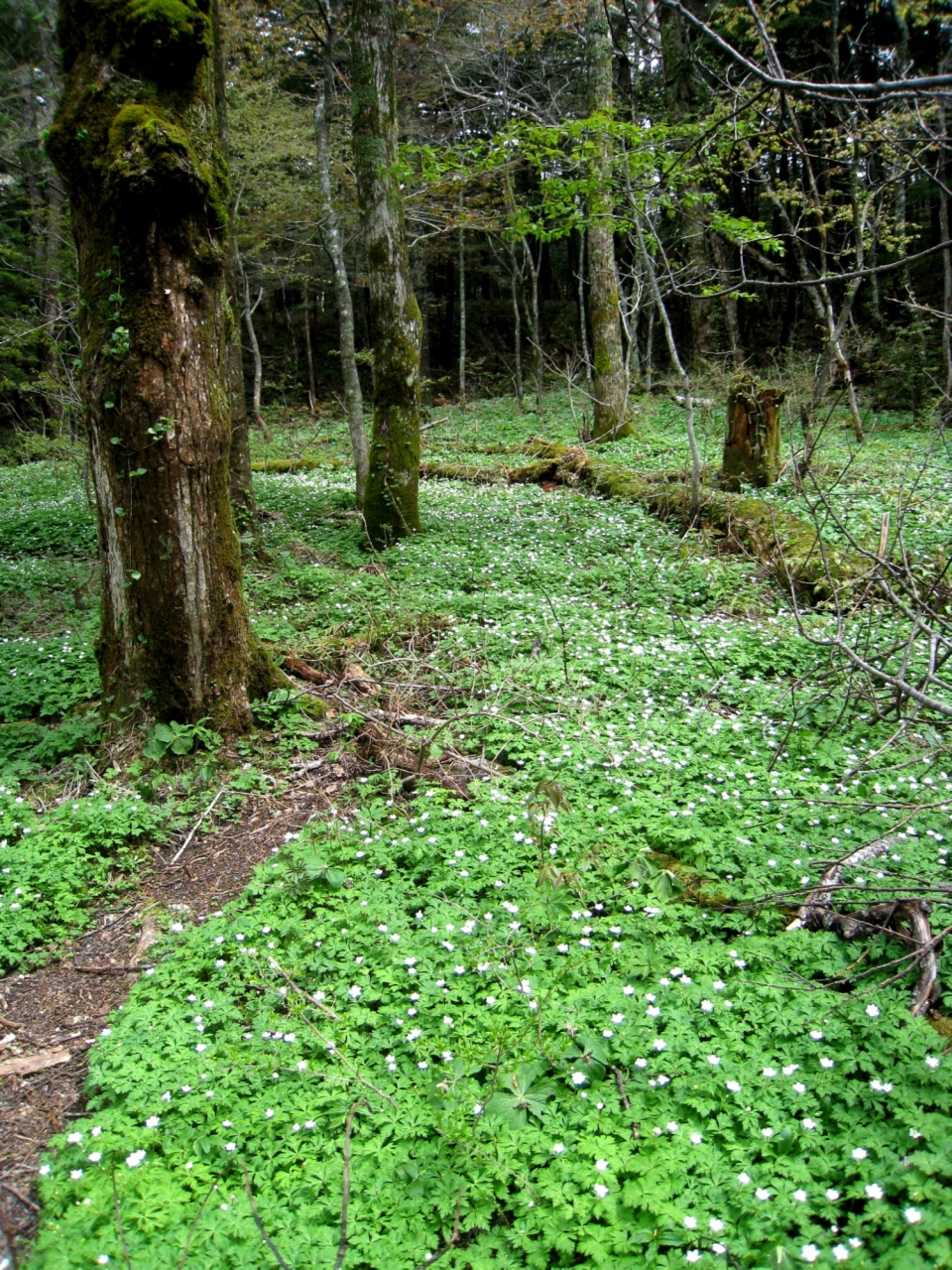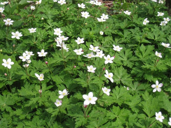 初めは雲がかかった山もだんだんクリアになり、一番の目的のニリンソウの群生も見事に見られました。白く可憐な可愛いニリンソウ、この時期しか見られない光景に友人とカメラに収めて、「ラッキ−だったね」と微笑みあいました。