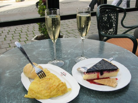 飲み物はもちろんCAVAで。夫は赤ワイン。 -