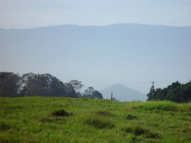 マウナ・ケア山西麓からの景色。山頂の天文台もしっかり見えます。