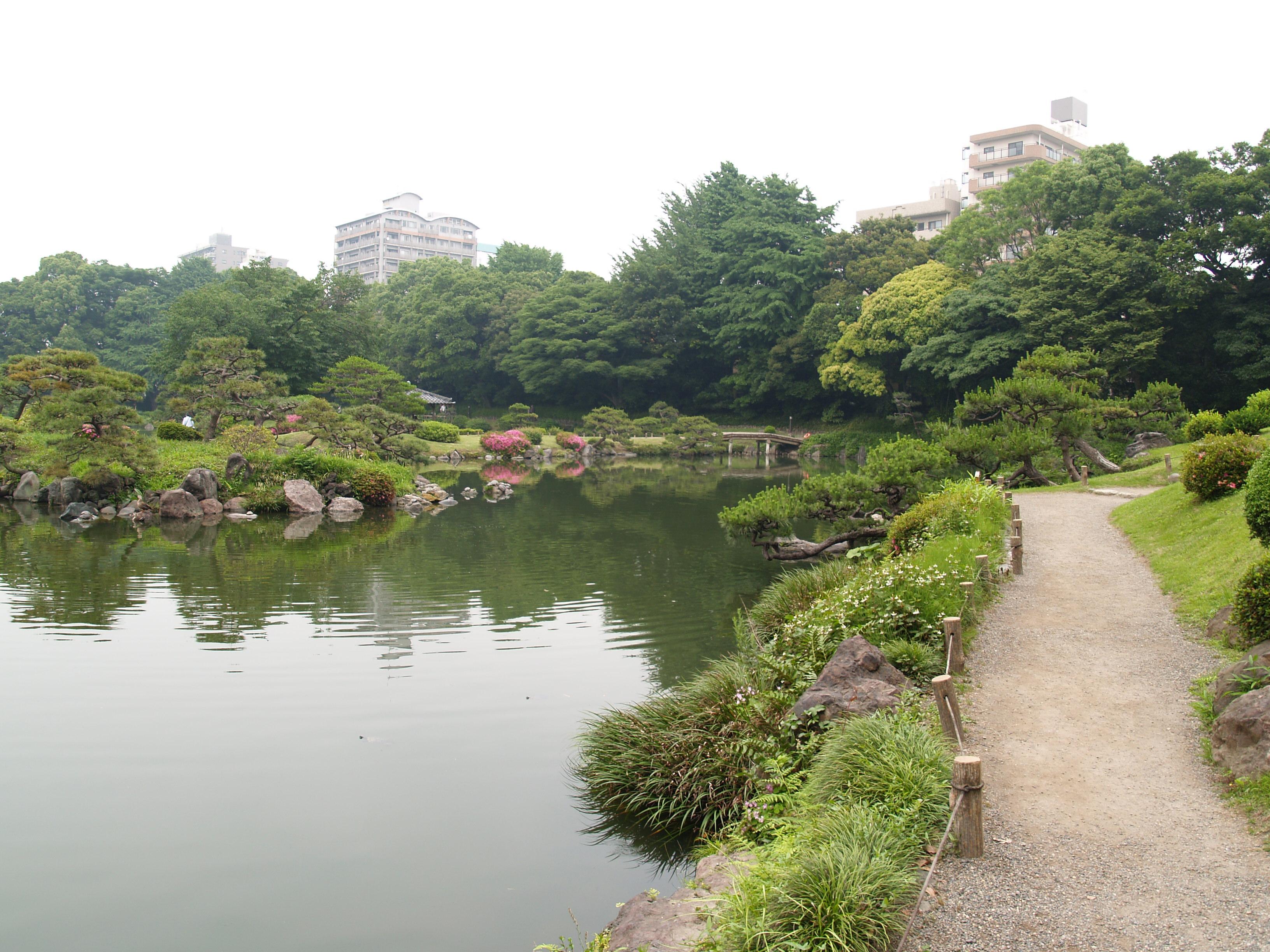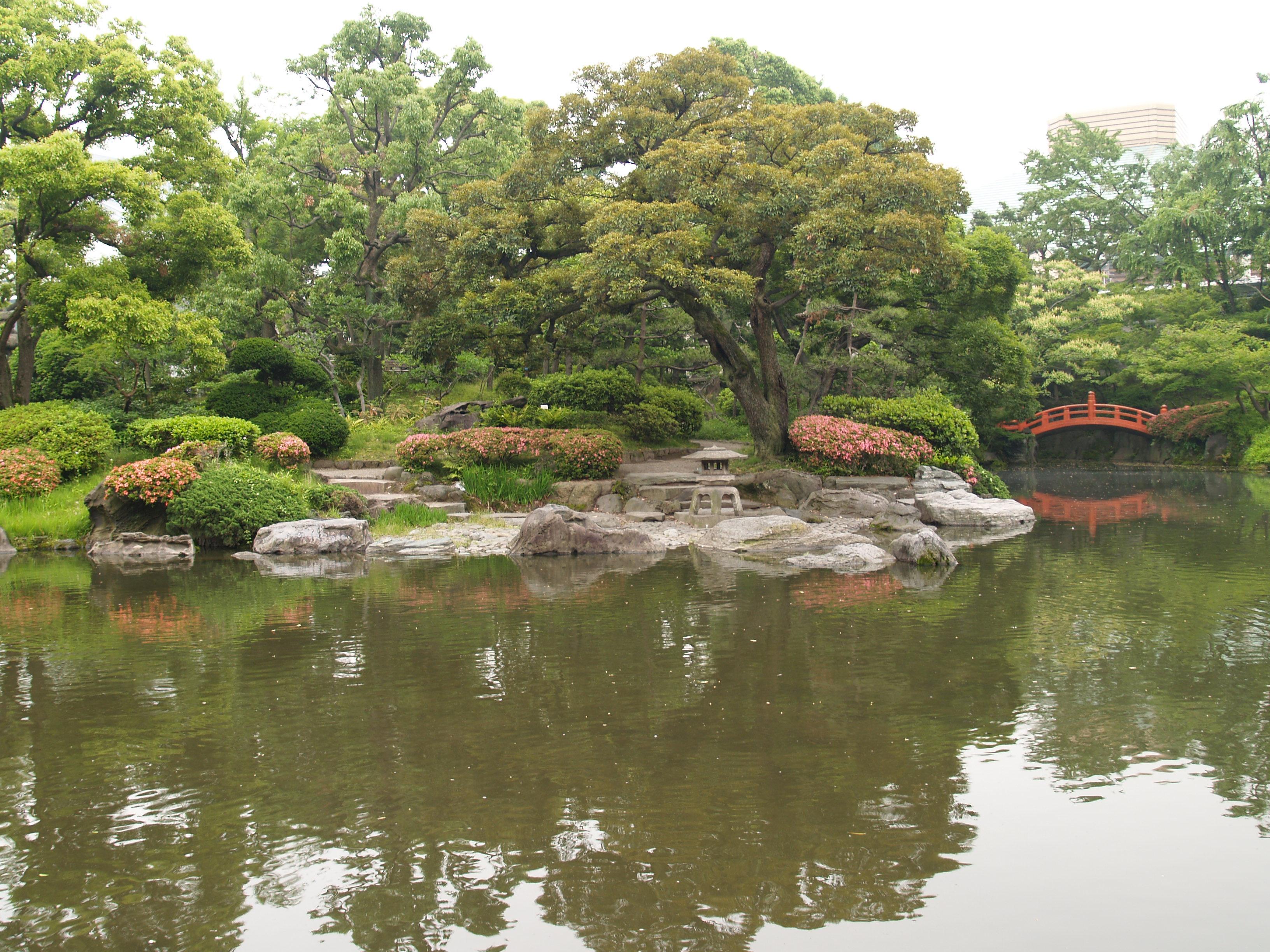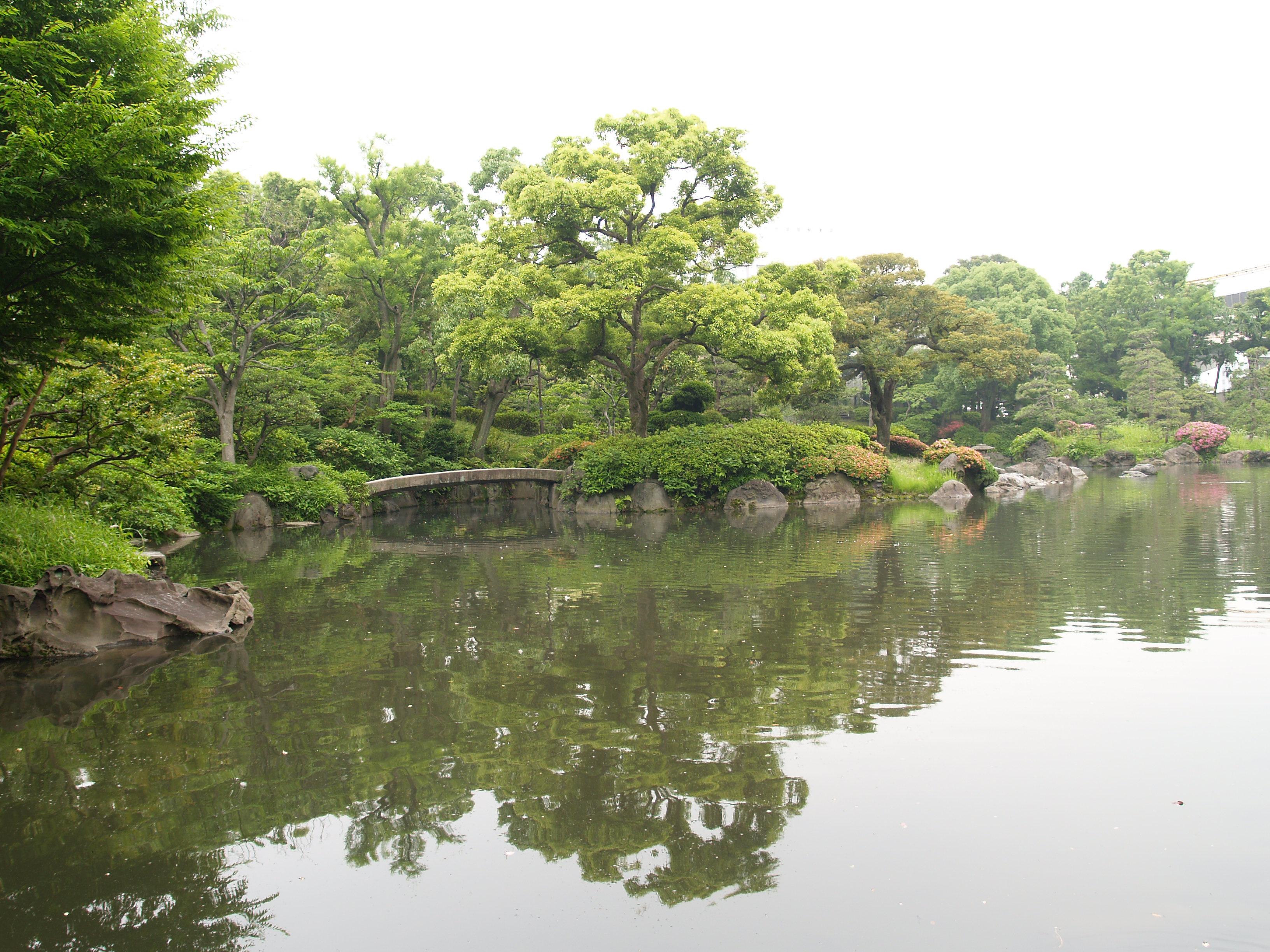 清澄庭園は池の周囲に築山や名石を配置した回遊式林泉庭園である。都心でゆったりと散策できる憩いの場となっている。