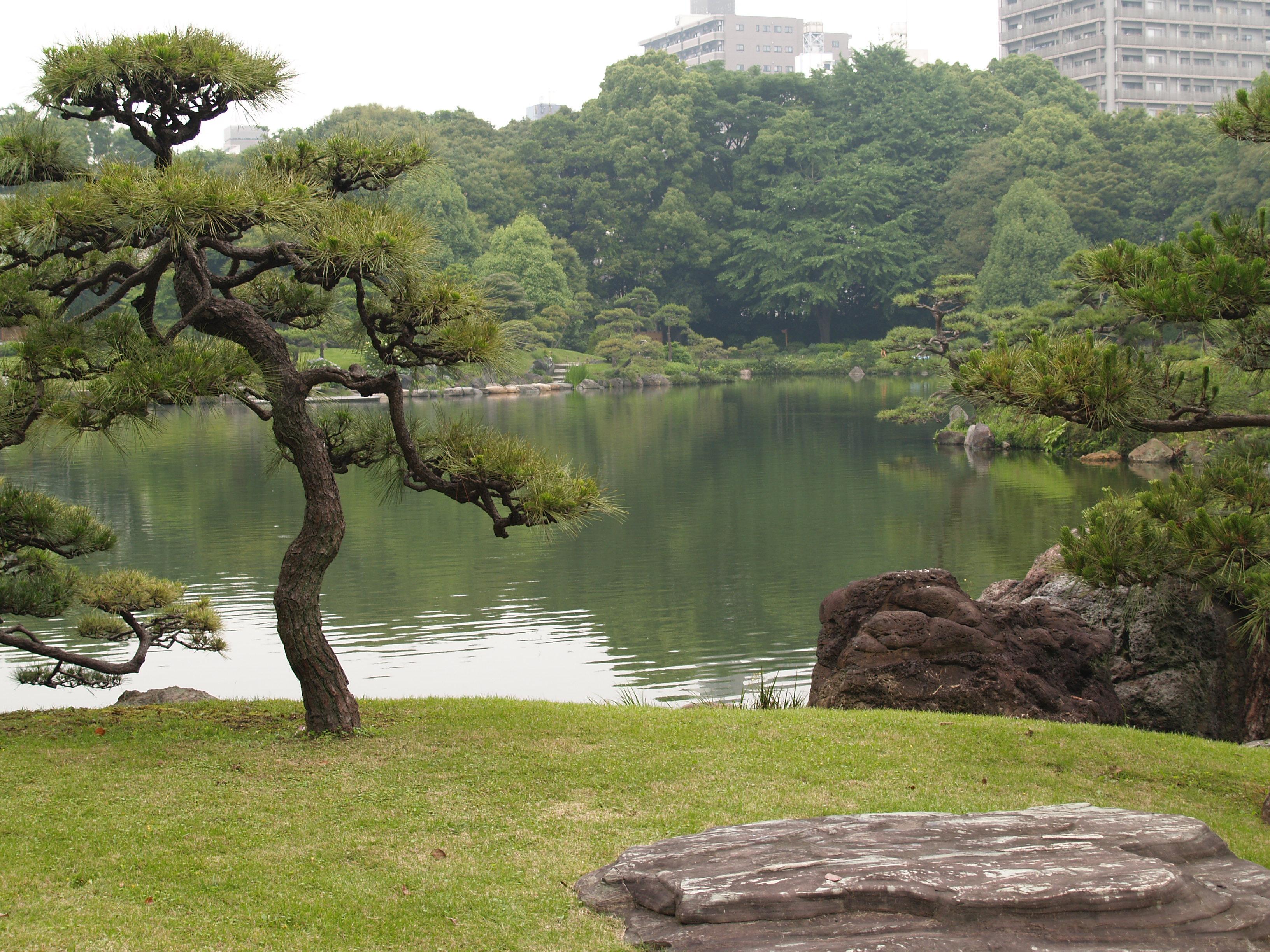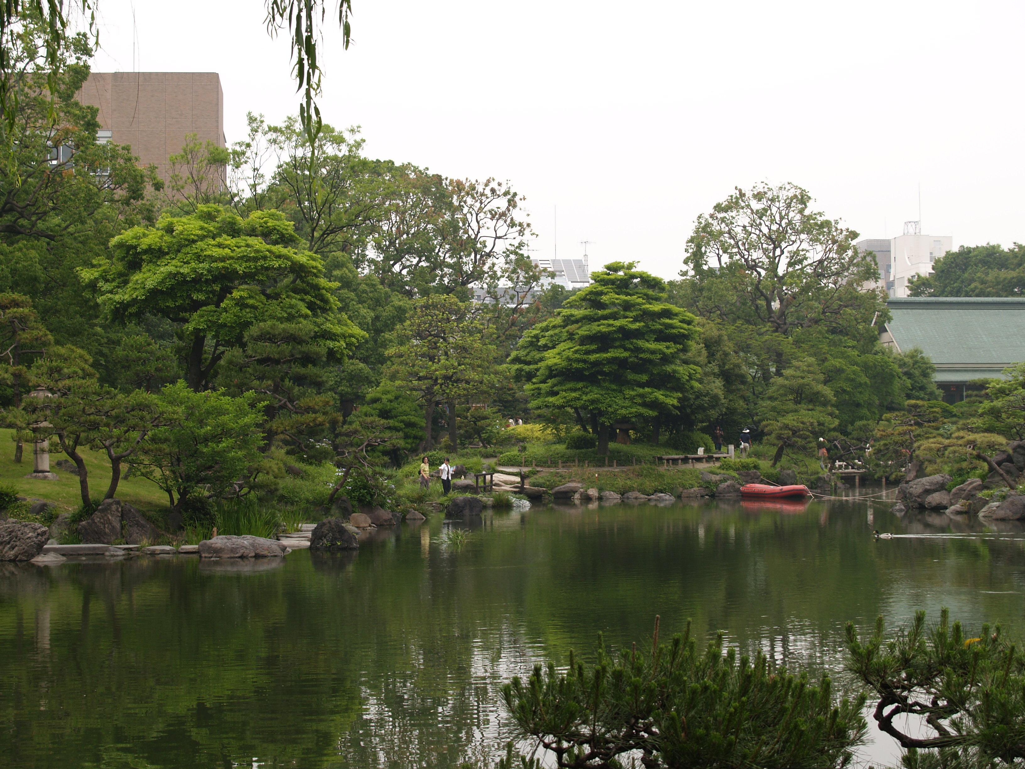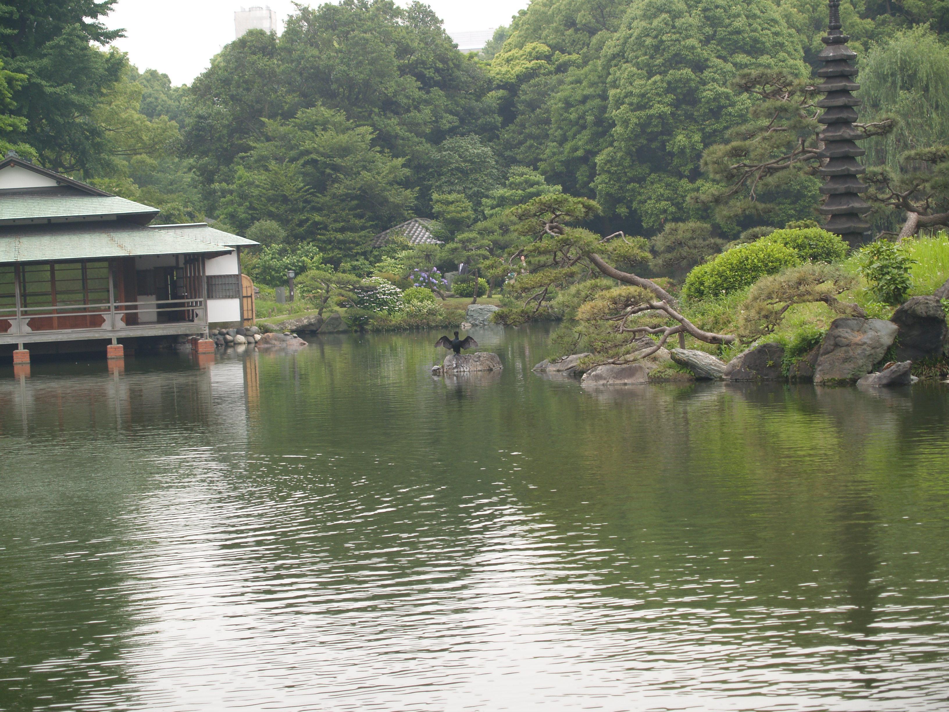 清澄庭園は池の周囲に築山や名石を配置した回遊式林泉庭園である。都心でゆったりと散策できる憩いの場となっている。