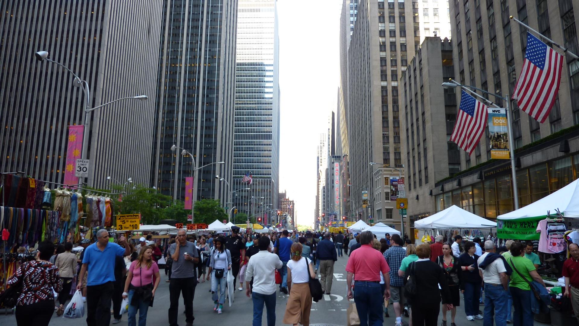 5番街より人出が多いです。この辺りはオフィスビルが多いエリアなので、本来、週末は人が少ないエリアです。