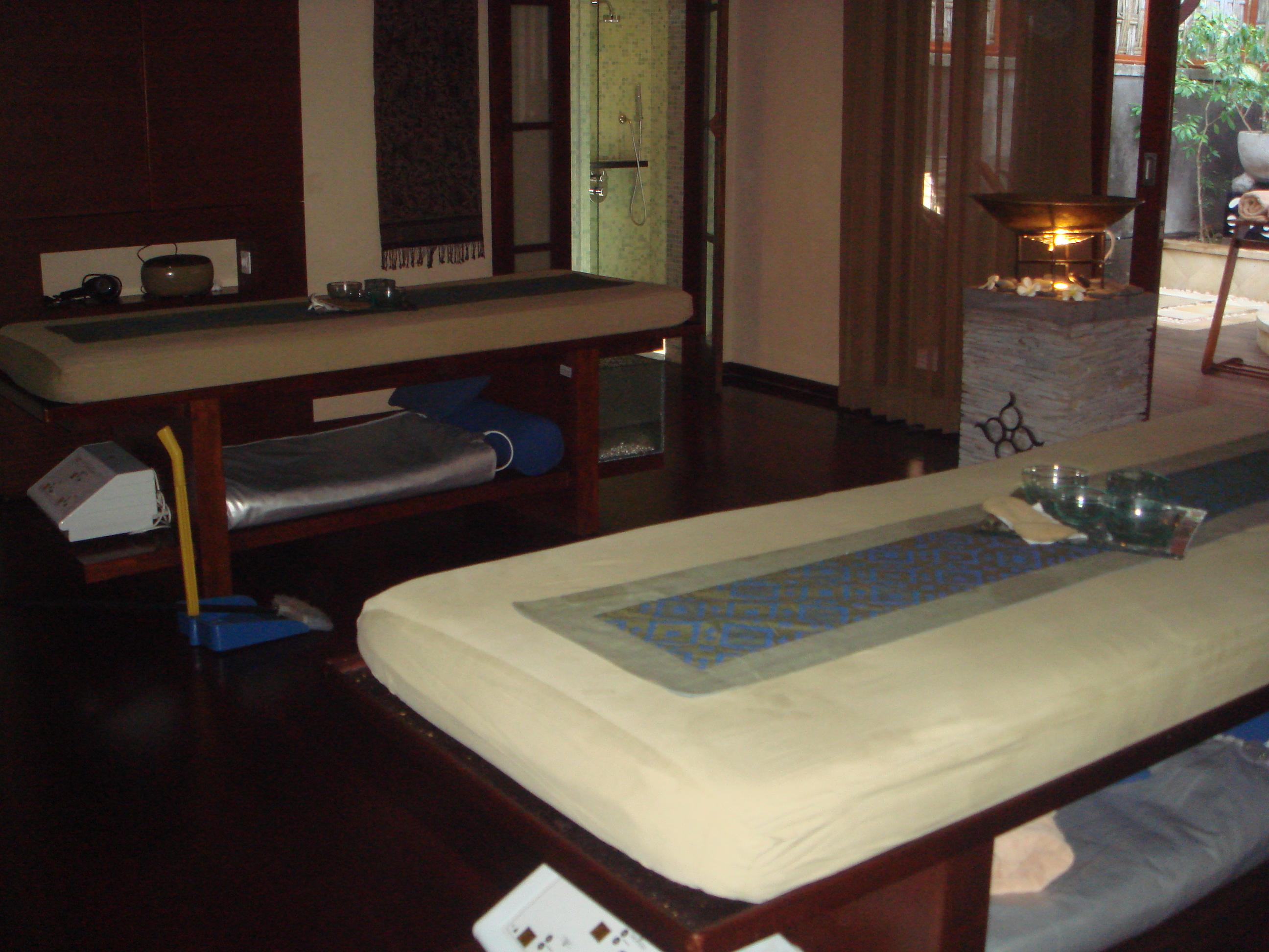 ジャグジー付きのツインベッドの部屋で友人と一緒に施術を受けました。17時スタート